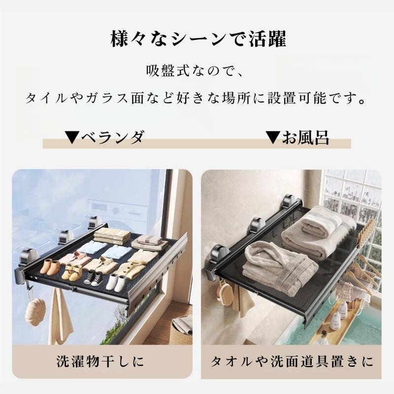 品名:吸盤式 ダンパー伸縮 折りたたみ物干しラック