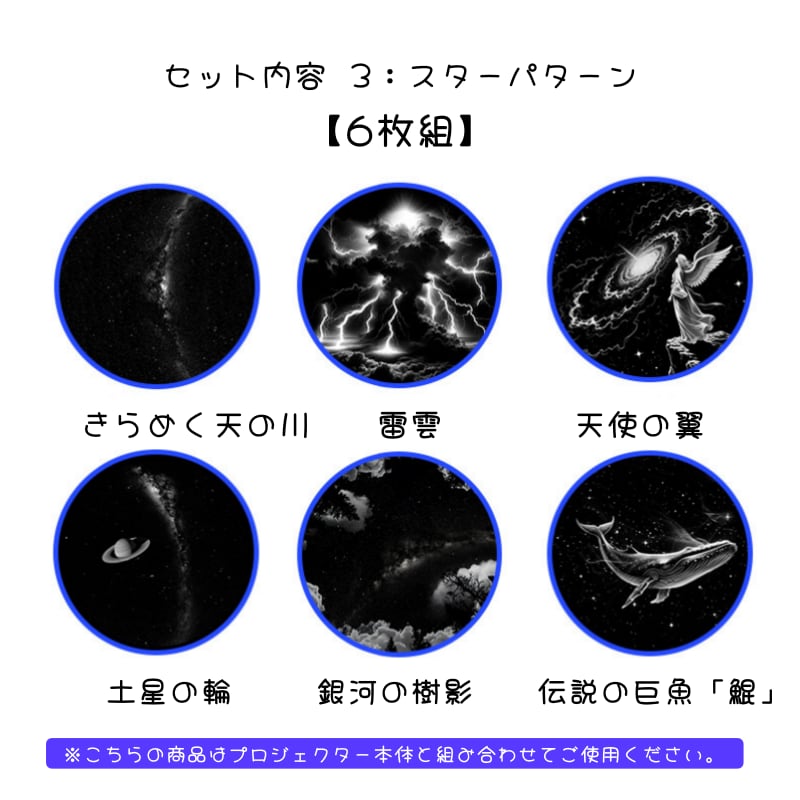 セット3(ファンタジーパターン6枚組):天の川、雷雲、天使の翼、土星の輪、銀河樹影、鯤