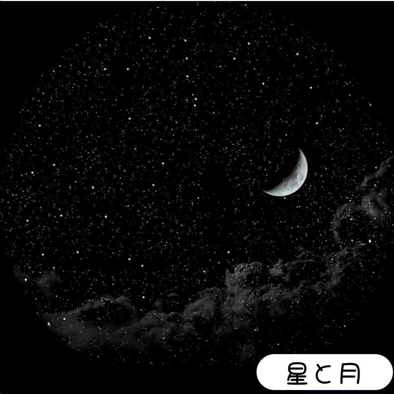 天の川、星座、惑星、幻想的な光景など、様々なテーマのディスクを交換するだけで、お部屋全体が別世界に変わります。