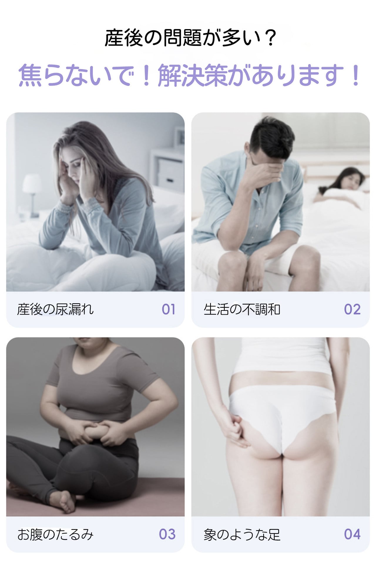 出産でゆるみがちな骨盤底筋を、筋力を使って効果的に刺激。尿漏れや膣の緩み、平らになりがちなお尻など、産後特有のお悩みに寄り添います。
