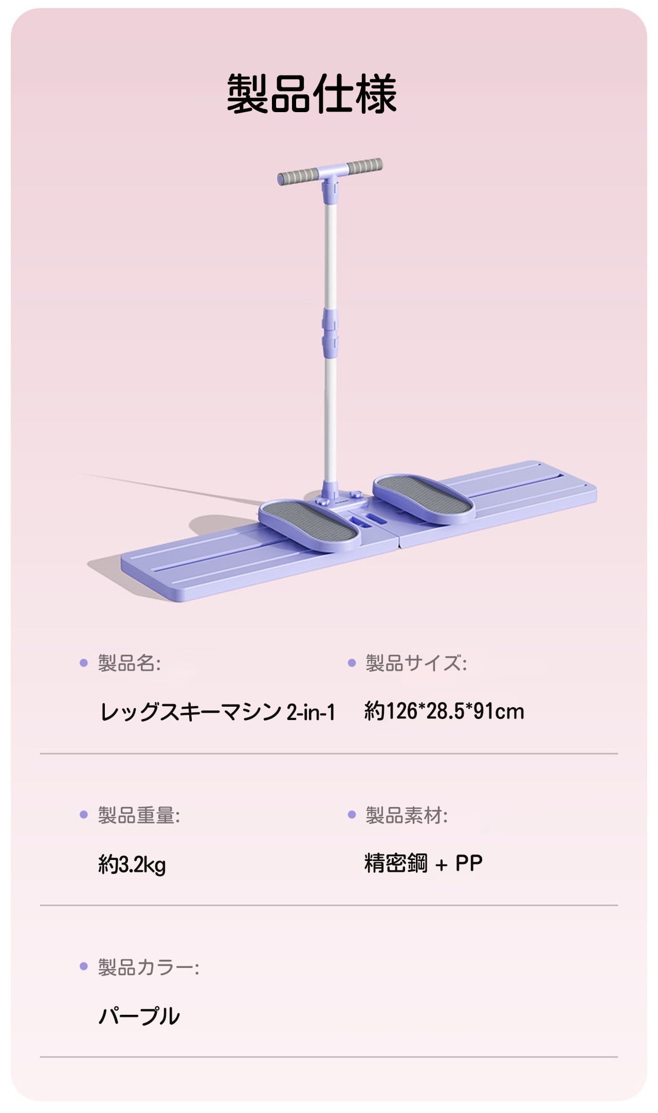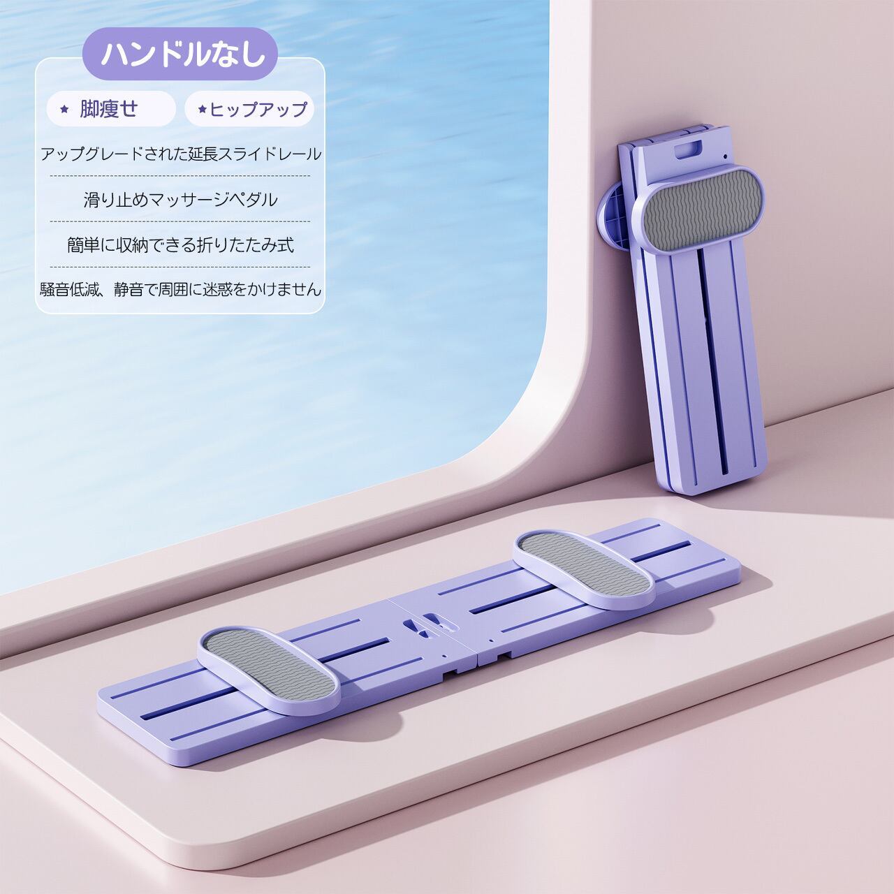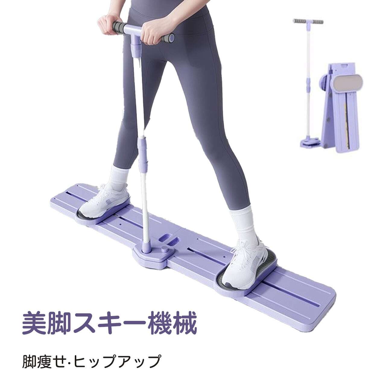 Y 305 . 骨盤底筋トレーナー 産後 引き締め ヒップアップ 脚やせ トレーニング器具 家庭用 折りたたみ 収納 コンパクト 静音 滑り止め T型ハンドル付き 2in1 レッグスキーマシン パープル | COCOFID