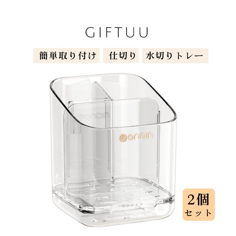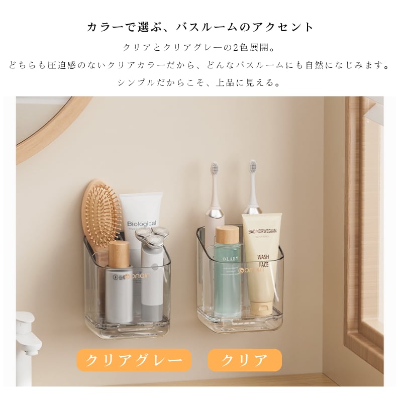 Y 306 . 収納ラック 2個セット 仕切り付き 取り外し可能 水切りトレー付き 壁掛け 置き型 2WAY 洗面所 収納 電動歯ブラシ 洗顔料 バス用品 スリム クリア クリアグレー | COCOFID