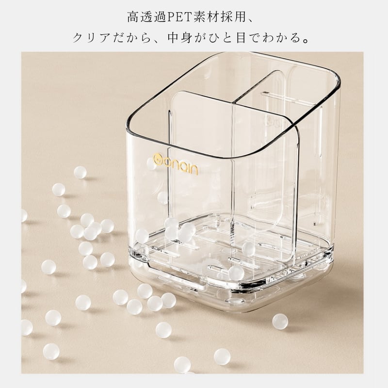 曇りのないクリアな素材で、中に何が入っているか一目瞭然。「あれ、どこに置いたっけ?」がなくなります。