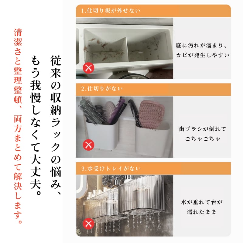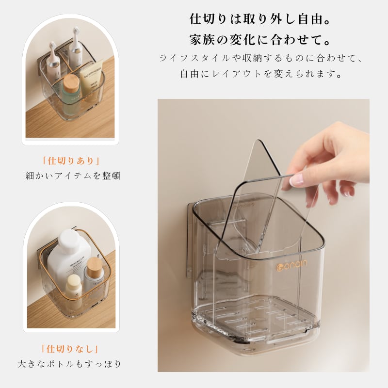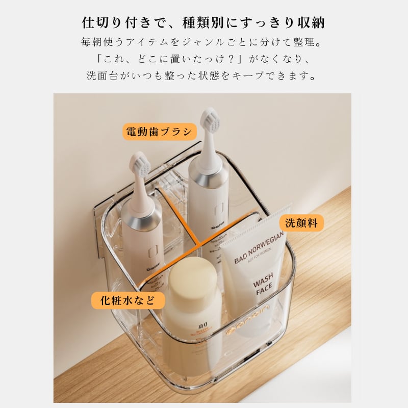 ✅ 【仕切りは自由にレイアウト】電動歯ブラシも洗顔料もすっきり
