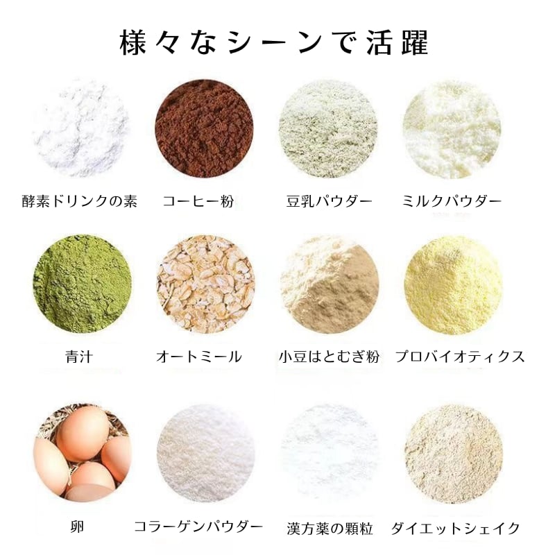 高回転のモーターが強力な水流を生み出し、プロテインや青汁、ココアなど、溶けにくい粉もしっかりかき混ぜます。