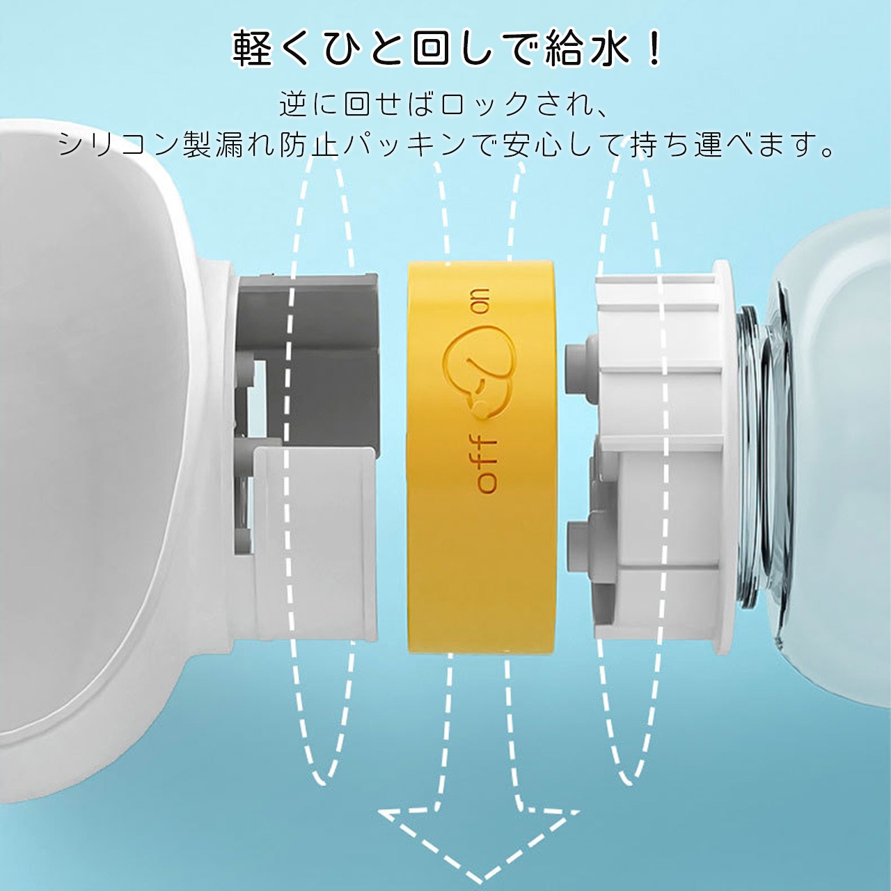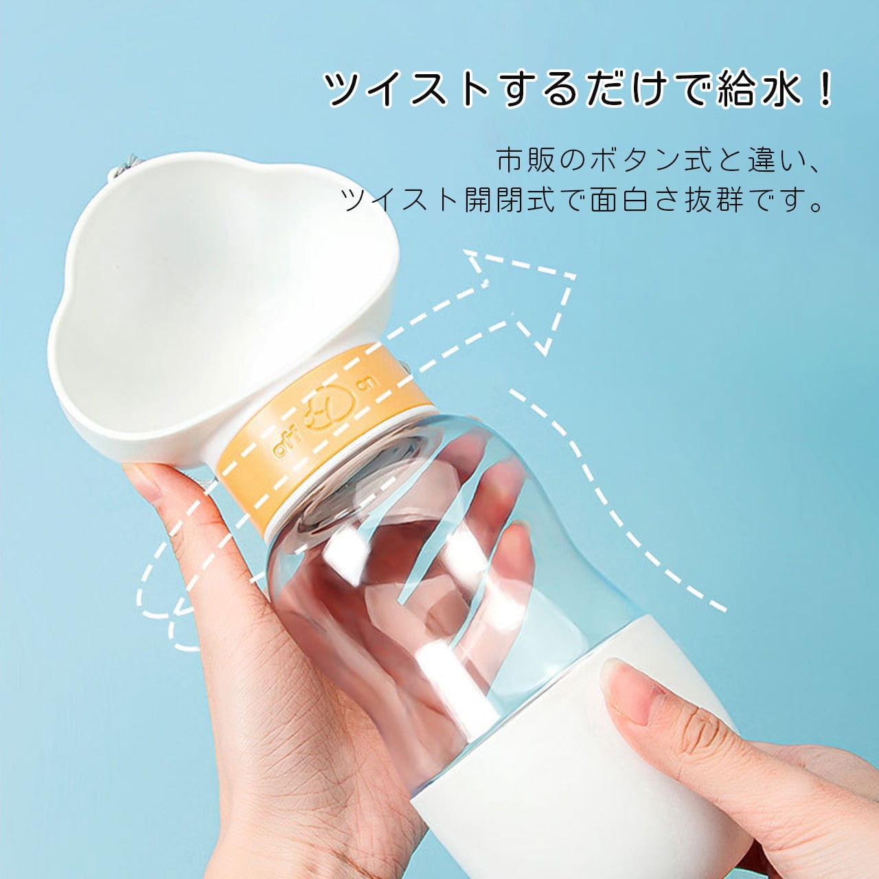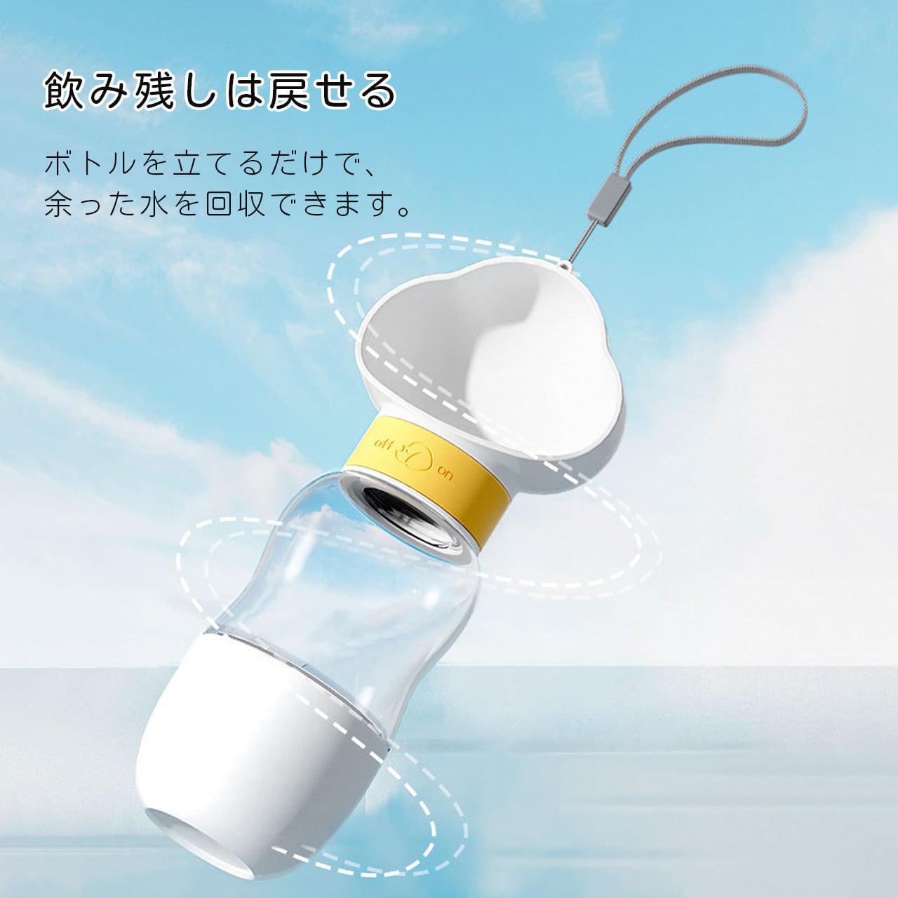 ボタンを押すだけで水が出て、愛犬が直接飲めるお皿になります。お散歩中でも片手で簡単に水分補給ができます。