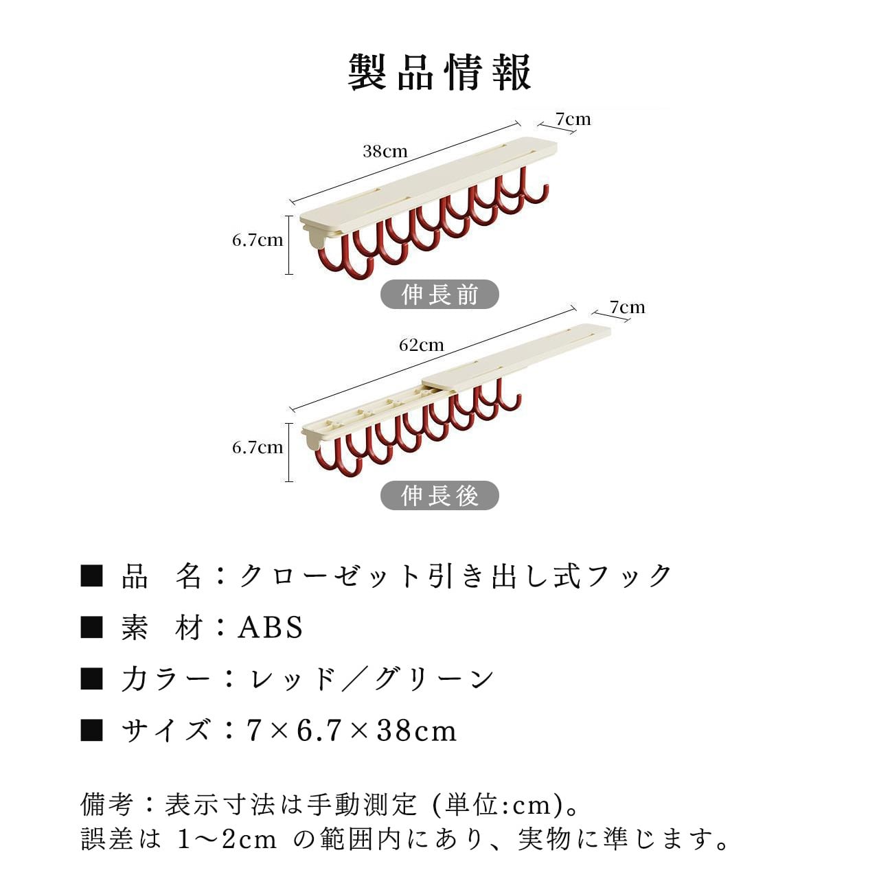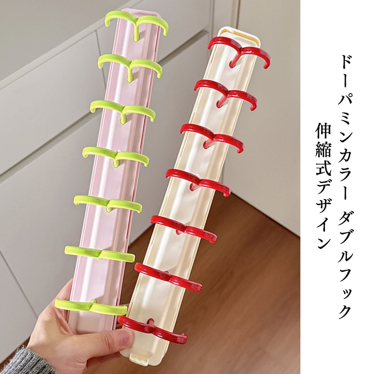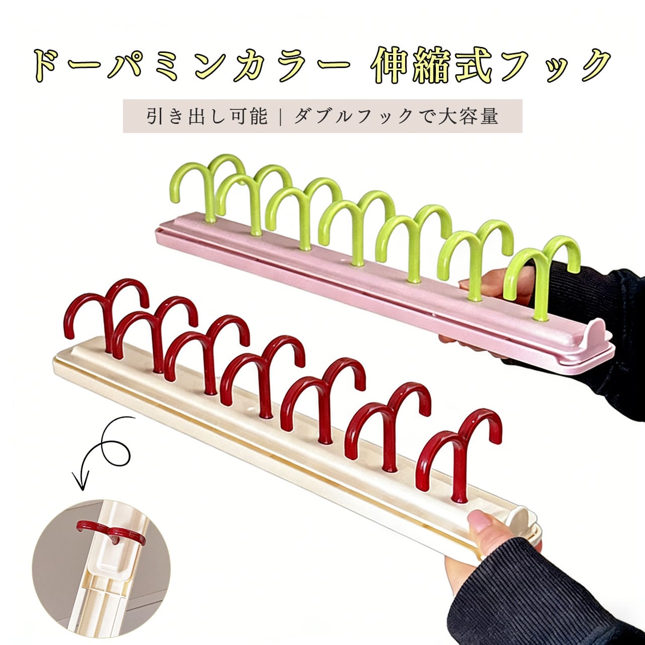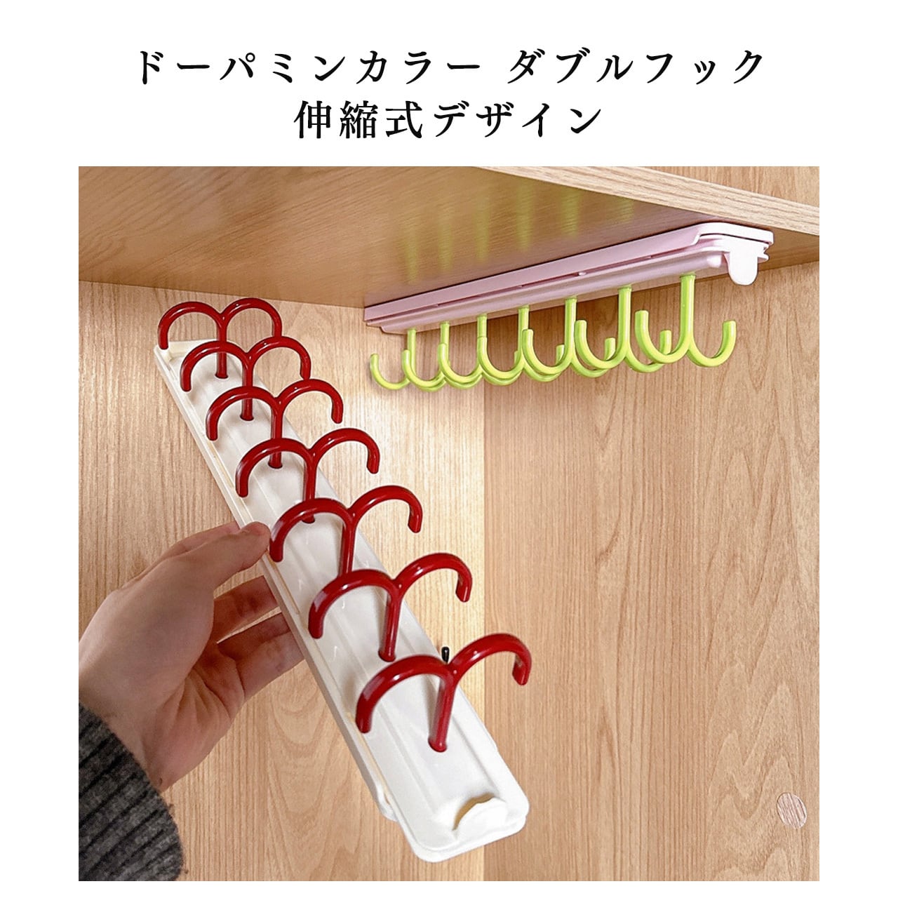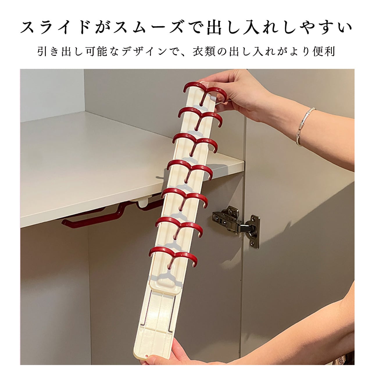 引き出し式でクローゼットの奥までスッキリ使え、ダブルフックで収納力が 2 倍に。