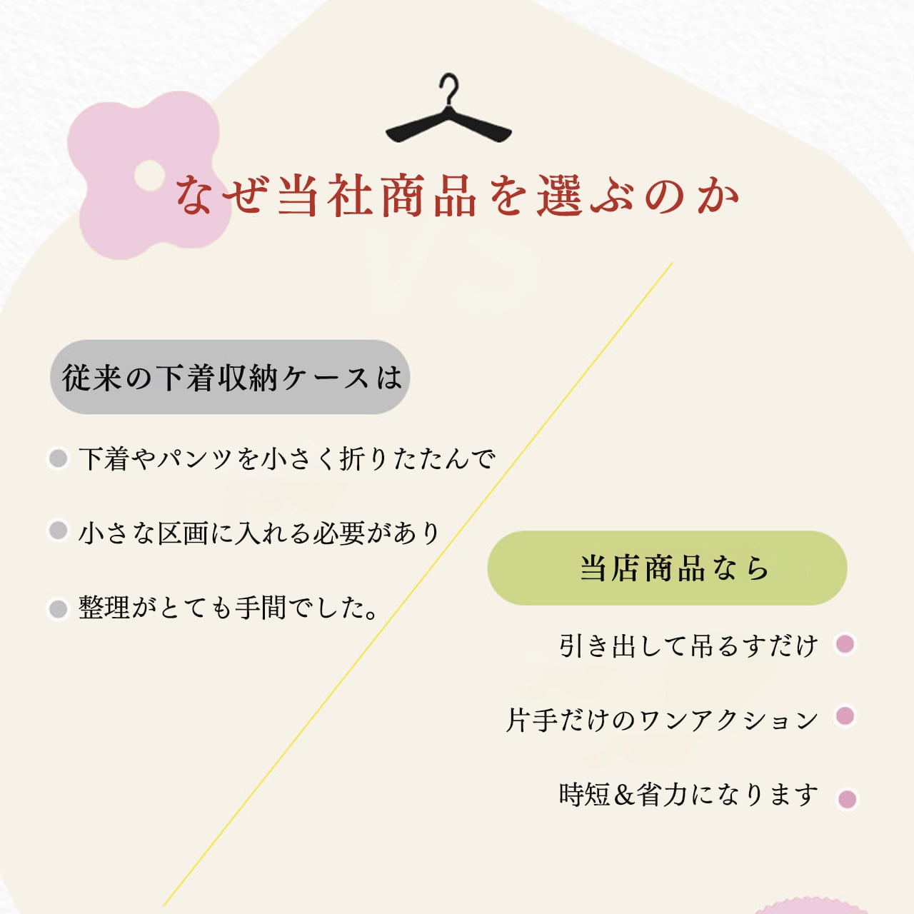- クローゼット収納:下着、キャップ、ハンガー、ネクタイなどをスッキリ収納し、クローゼットを広く使えます