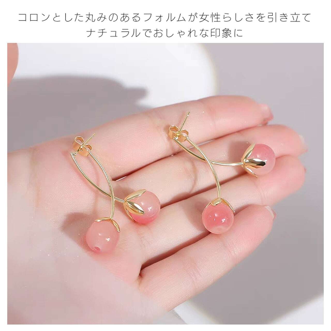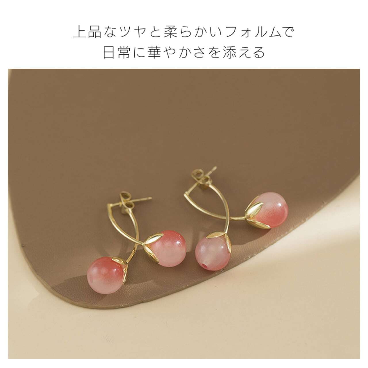 控えめながらも存在感のあるチェリーモチーフ。甘くなりすぎず、大人の女性が日常使いできる上品さを追求しました。どんなコーディネートにも自然に馴染み、さりげなく個性を演出します。