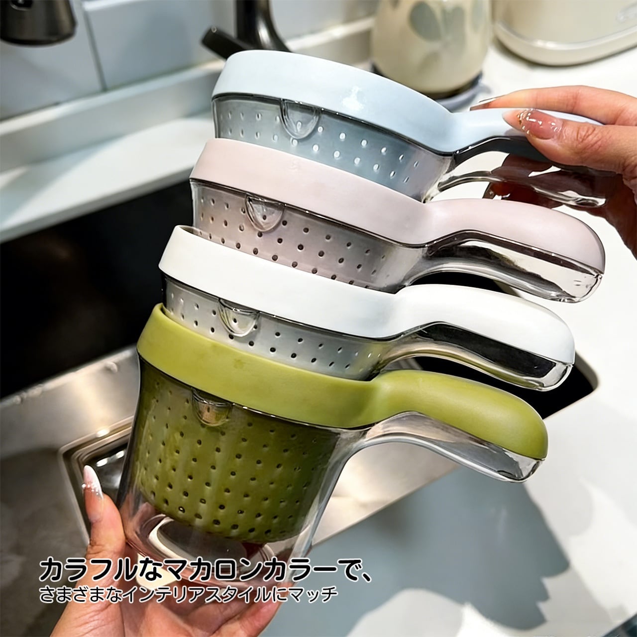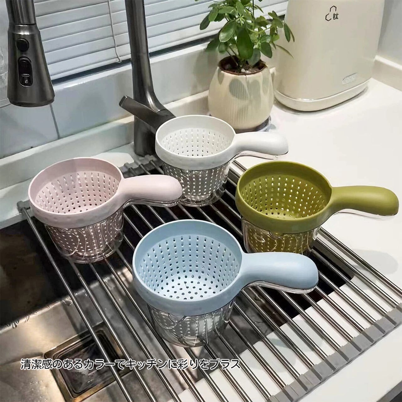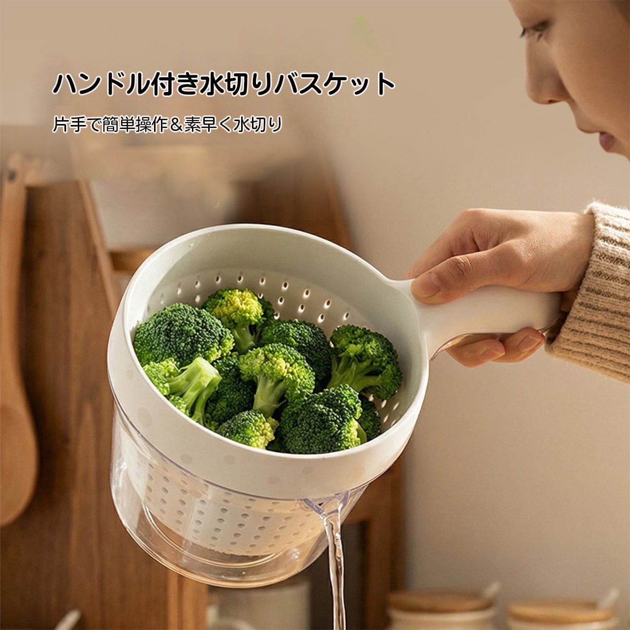 何度も容器を替えて水切りする手間がなくなり、1 つで洗う・水切る・盛るまで完了。キッチンの片付けをスマートにします🎯