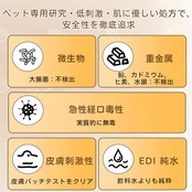 特殊な除菌成分が、ペットの体に付着した細菌やウイルスを 99.9% 除去します。清潔な状態を保ち、ペットの健康を守ります。