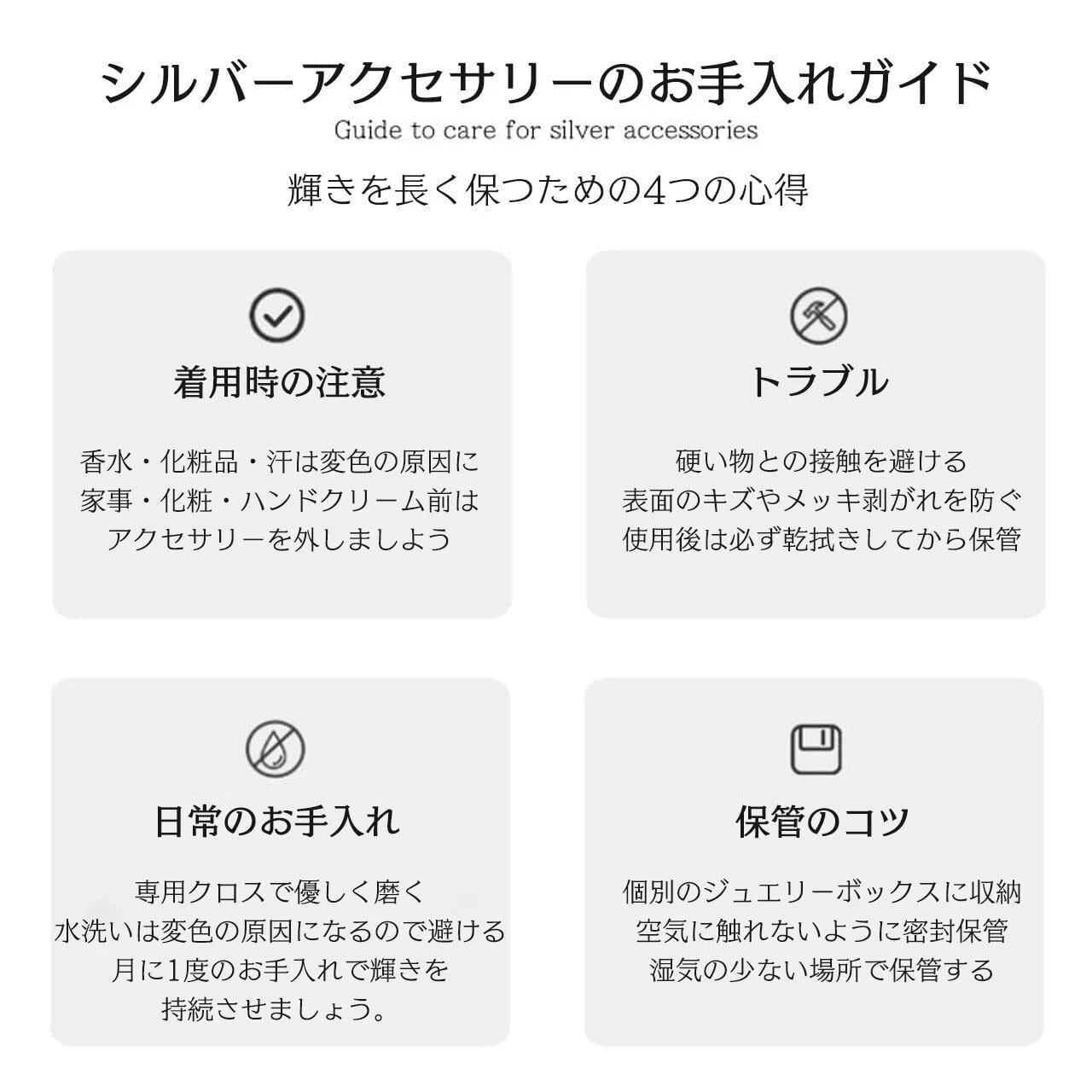 ✅ 925銀素材:肌に優しく、アレルギー体質の方でも安心して着用可能。長く着用しても変色しにくく、銀本来の柔らかな光沢を長く保ちます。
