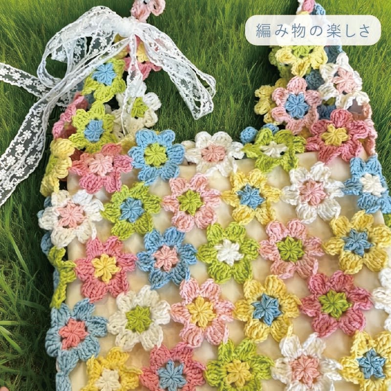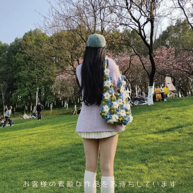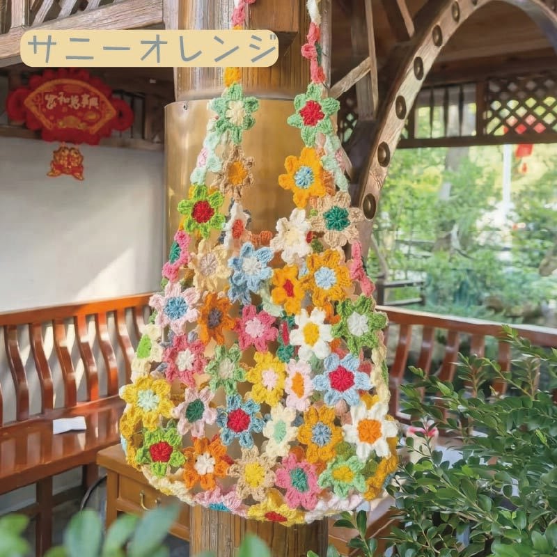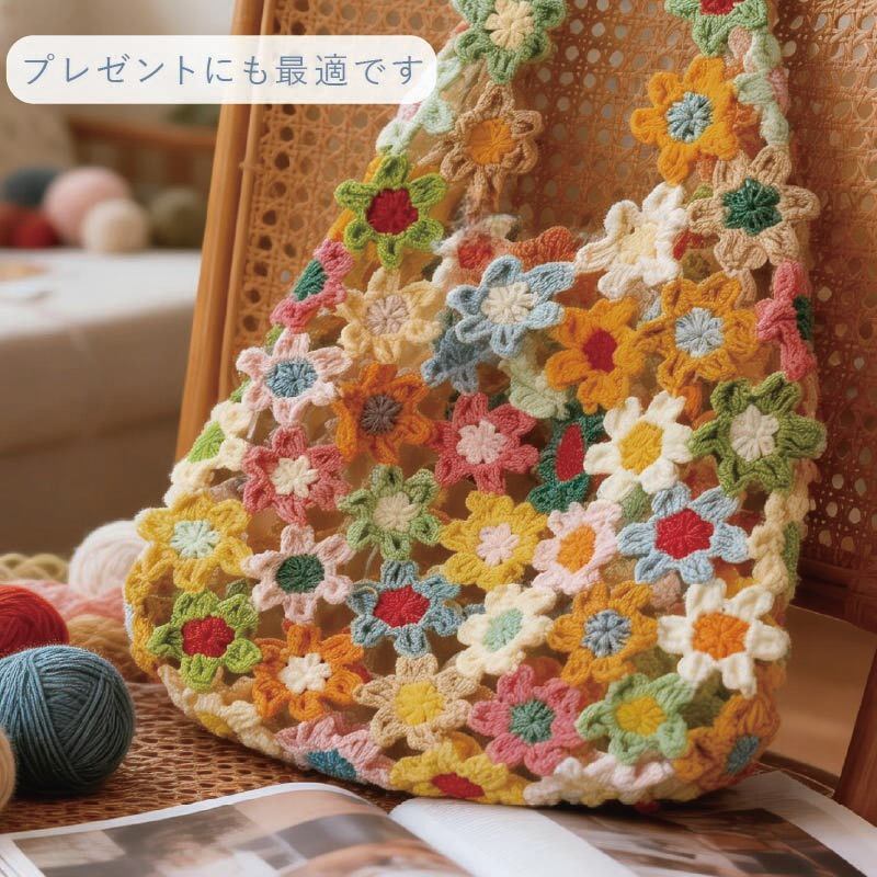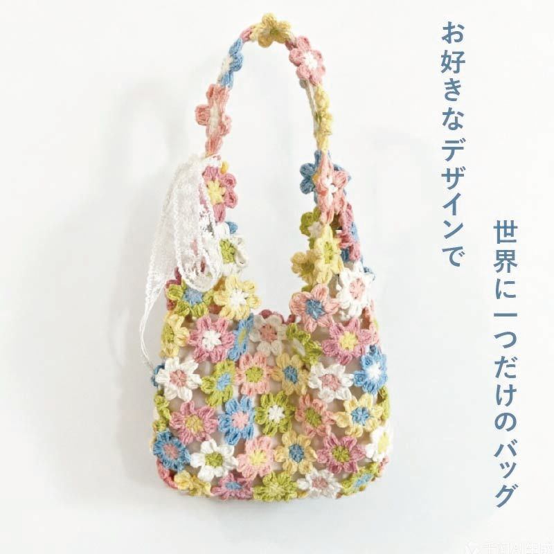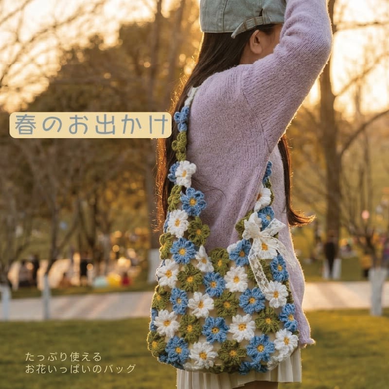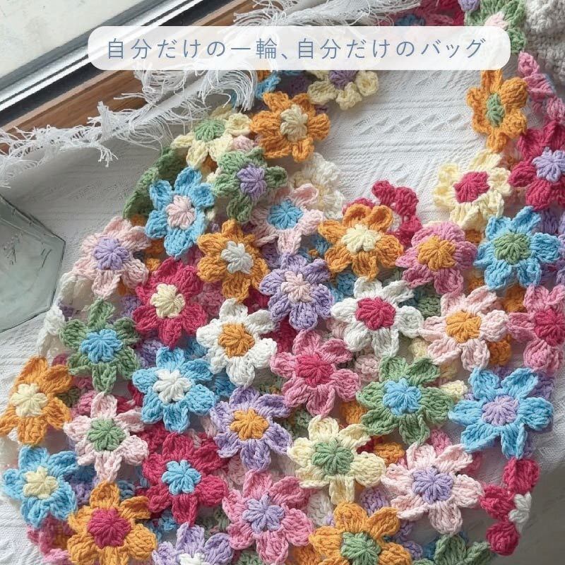 手編みの花が咲く、かわいい花バッグの制作キットです。