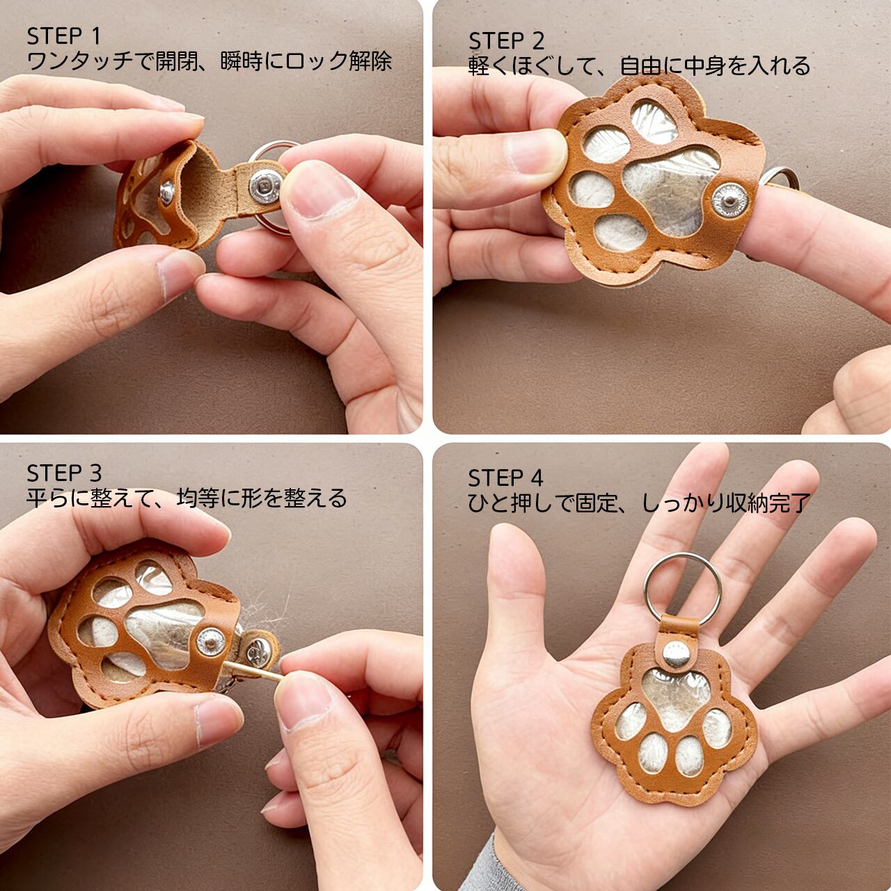 🐾 レザーキーホルダー|クリエイティブ ペット毛収納アクセサリー