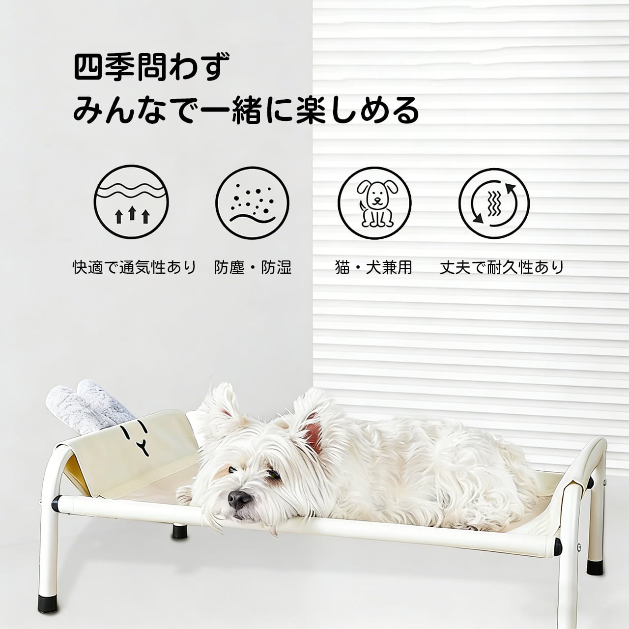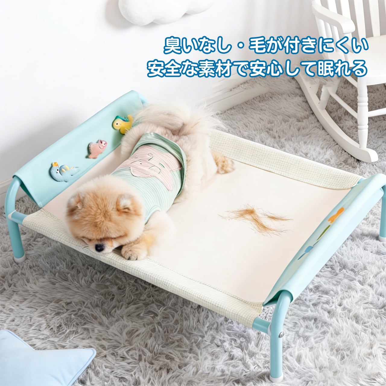 安全設計で、飛び跳ねても安心、長く使えるペットベッド。