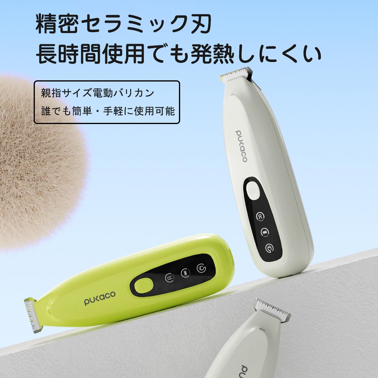 → 親指サイズのペット用電動バリカン!猫・犬の足裏毛・肛門周りなど細かい部位を簡単トリミング✨90 分充電で最長 120 分連続使用、2 段階スピード調整付き低騒音・低振動設計で、音に敏感なペットもストレスフリークリアホワイト / レモングリーン 2 色展開、自宅トリミングでコスト削減&ペットとの絆 UP🐾
