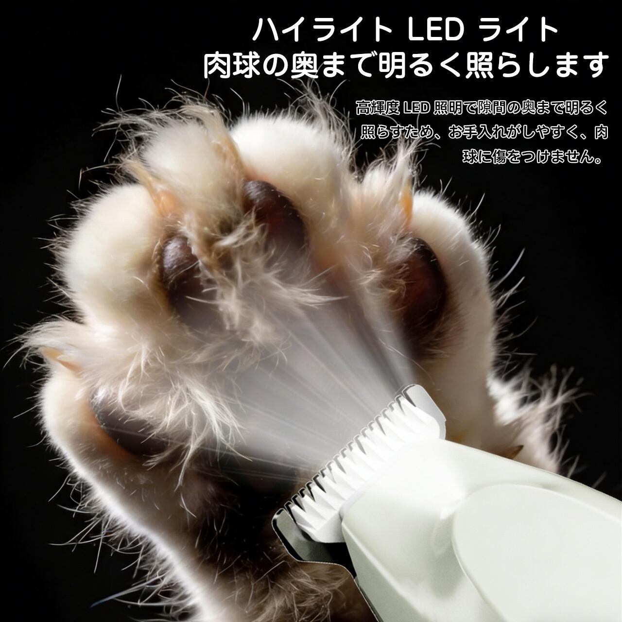 - 🐱 猫のトリミング:猫の足裏毛、お腹の毛、肛門周り、耳周りなど、細かい部位のトリミングに最適。足裏毛をカットすることで、滑り止め効果が向上し、猫の怪我を防げます。