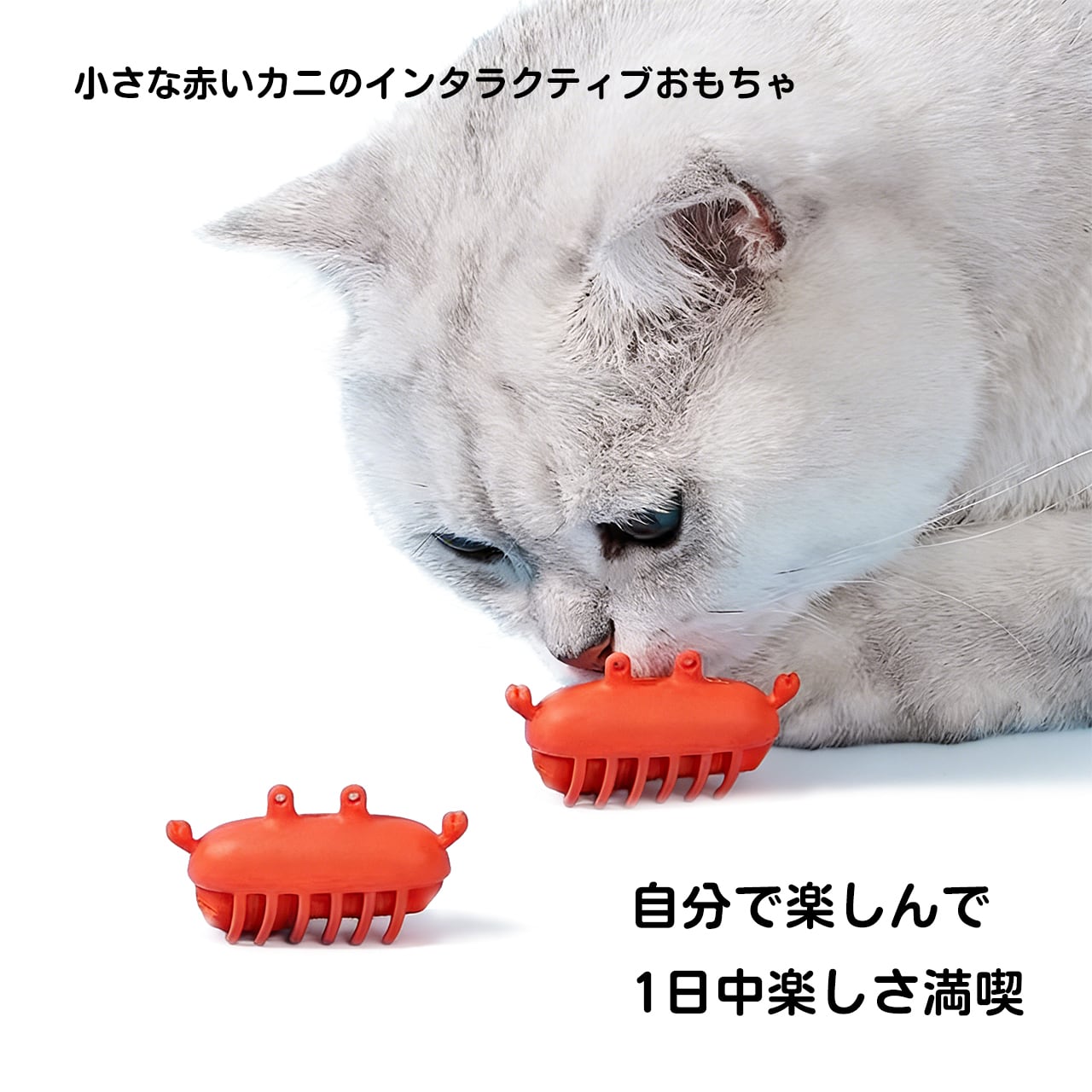 ユニークで愛らしい赤いカニの形が特徴。猫の目を引き、遊んでいる姿がとてもキュート!お部屋に置いてもインテリアとして可愛く、目を引きます。