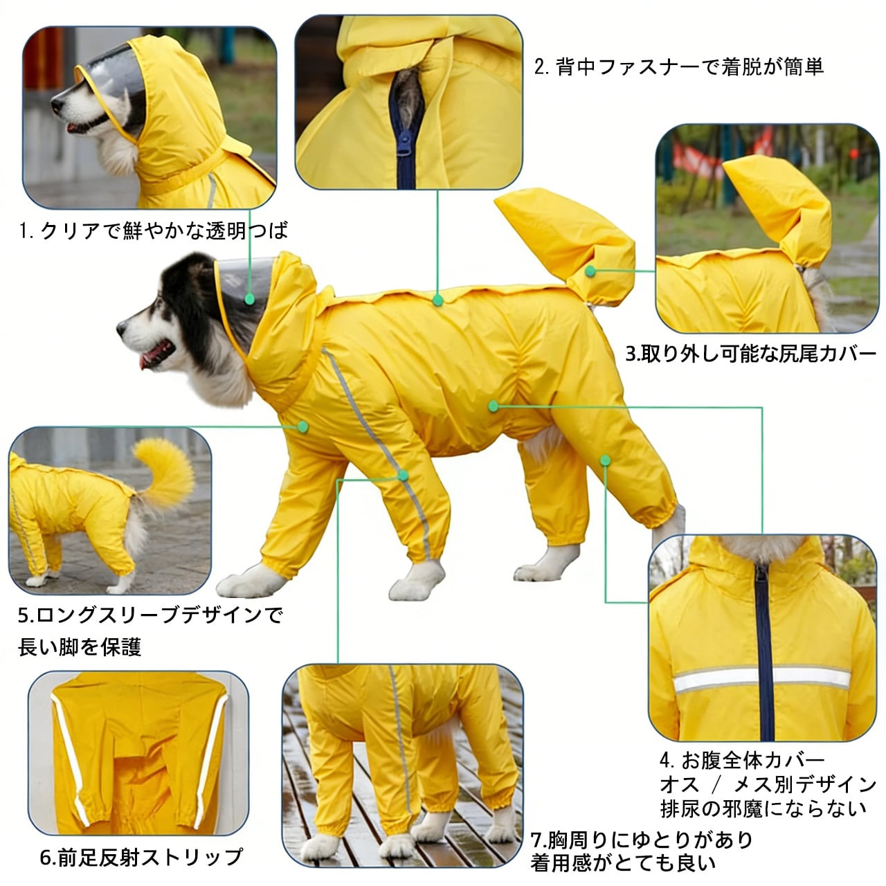 大型犬用全身防水レインコート4 足・尻尾フルカバー中型~大型犬に最適