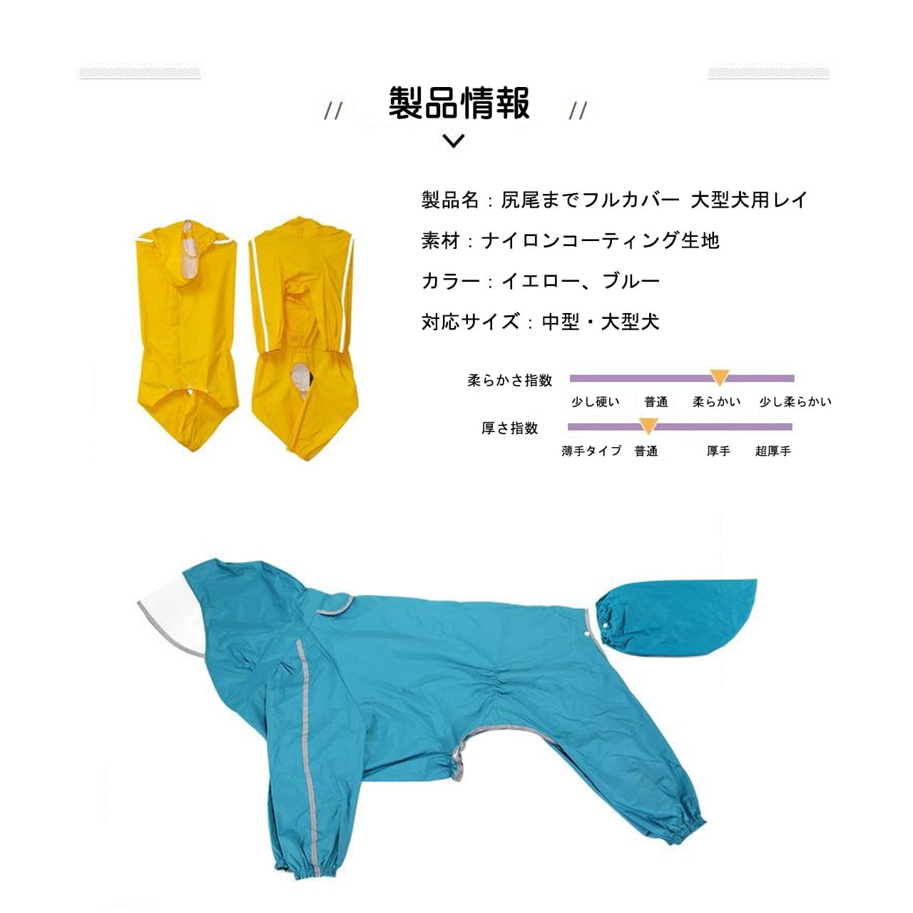 ■ 品名:尻尾までカバー フルカバー 大型犬用レインコート
