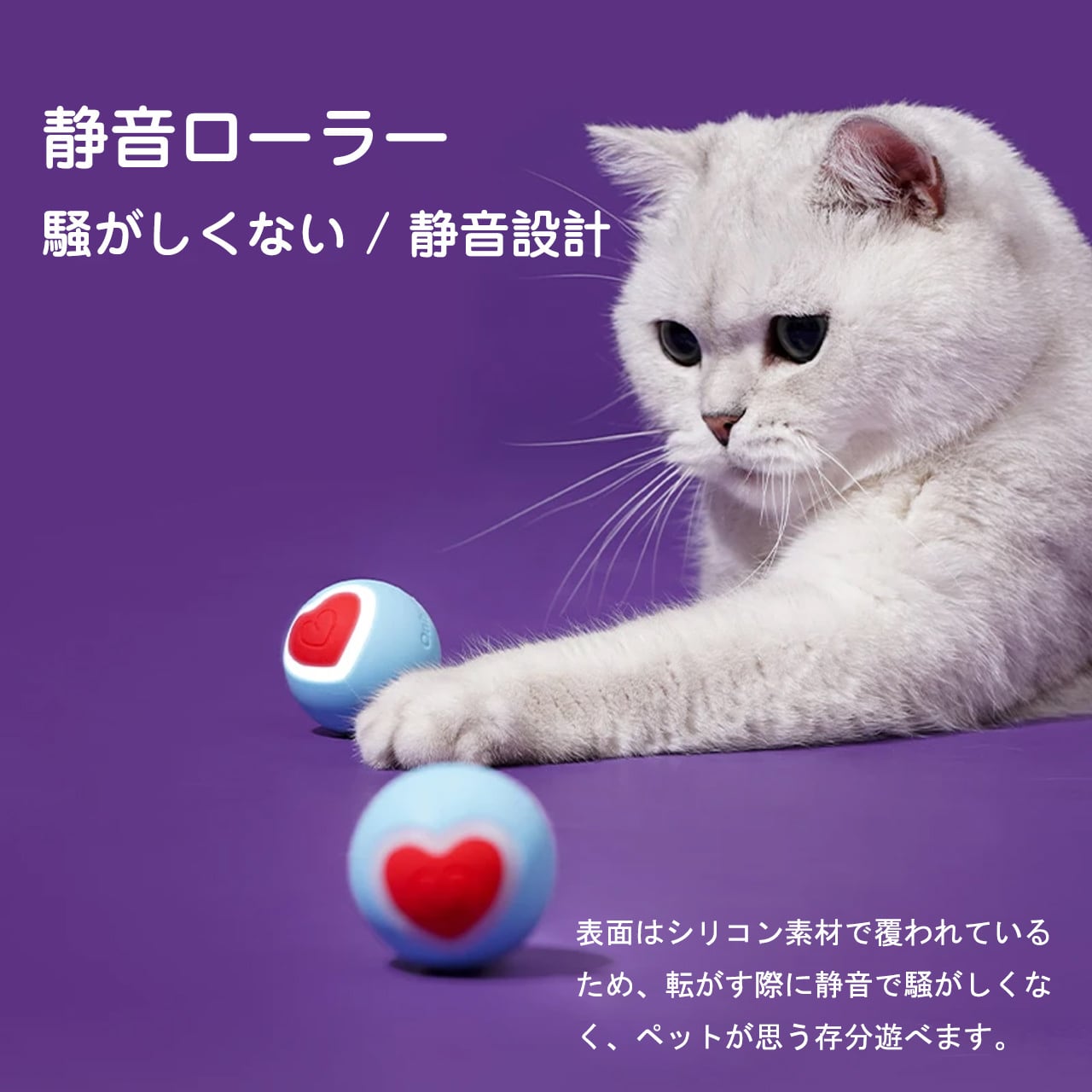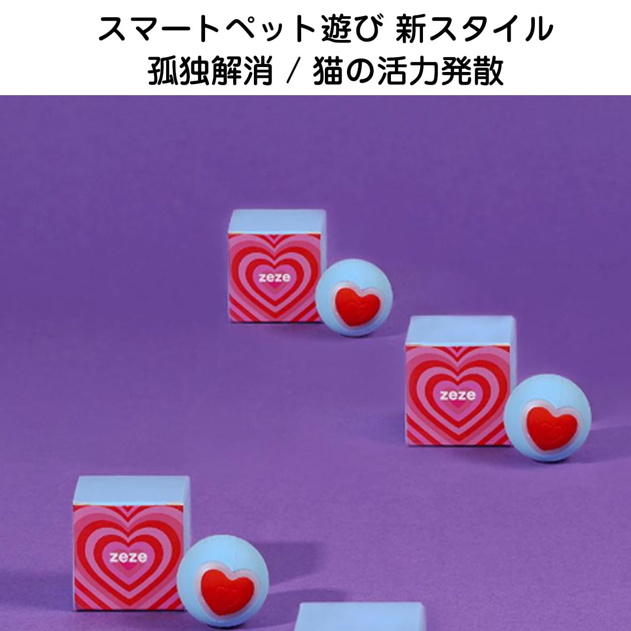 ボール表面に愛らしいハート柄をデザイン、SNS 映えも抜群で、猫ちゃんとの思い出作りにもぴったり。
