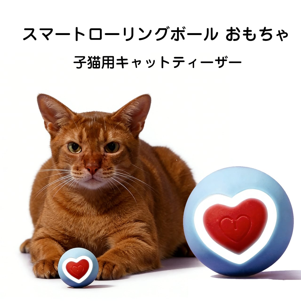 🐱ハート柄スマートローリングボール猫の自発おもちゃ。噛んで転がって退趣解消、子猫の歯固めに最適