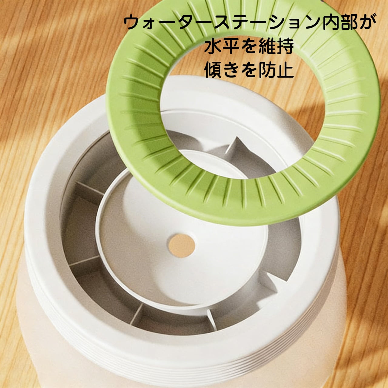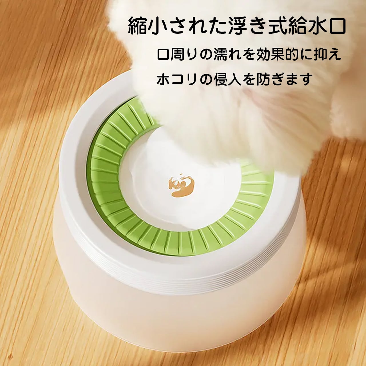 特殊なフロート構造が水の波打ちを抑え、犬が激しく飲んでも水が外に飛び散らず、床やカーペットを汚しません。