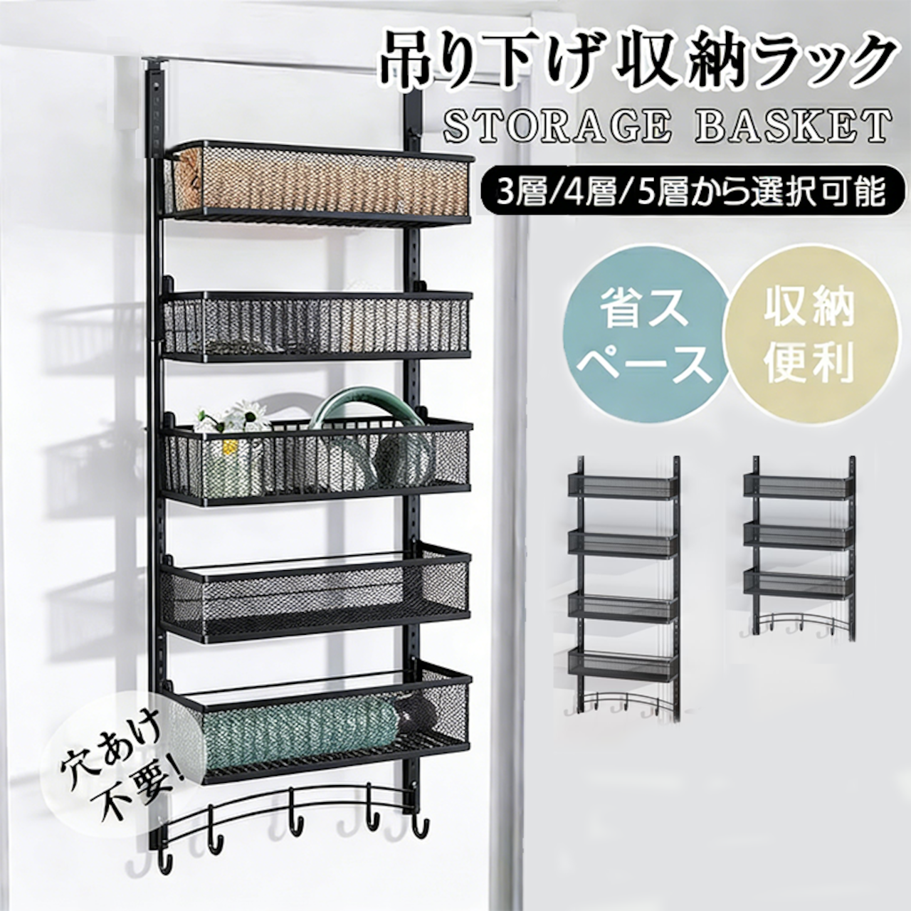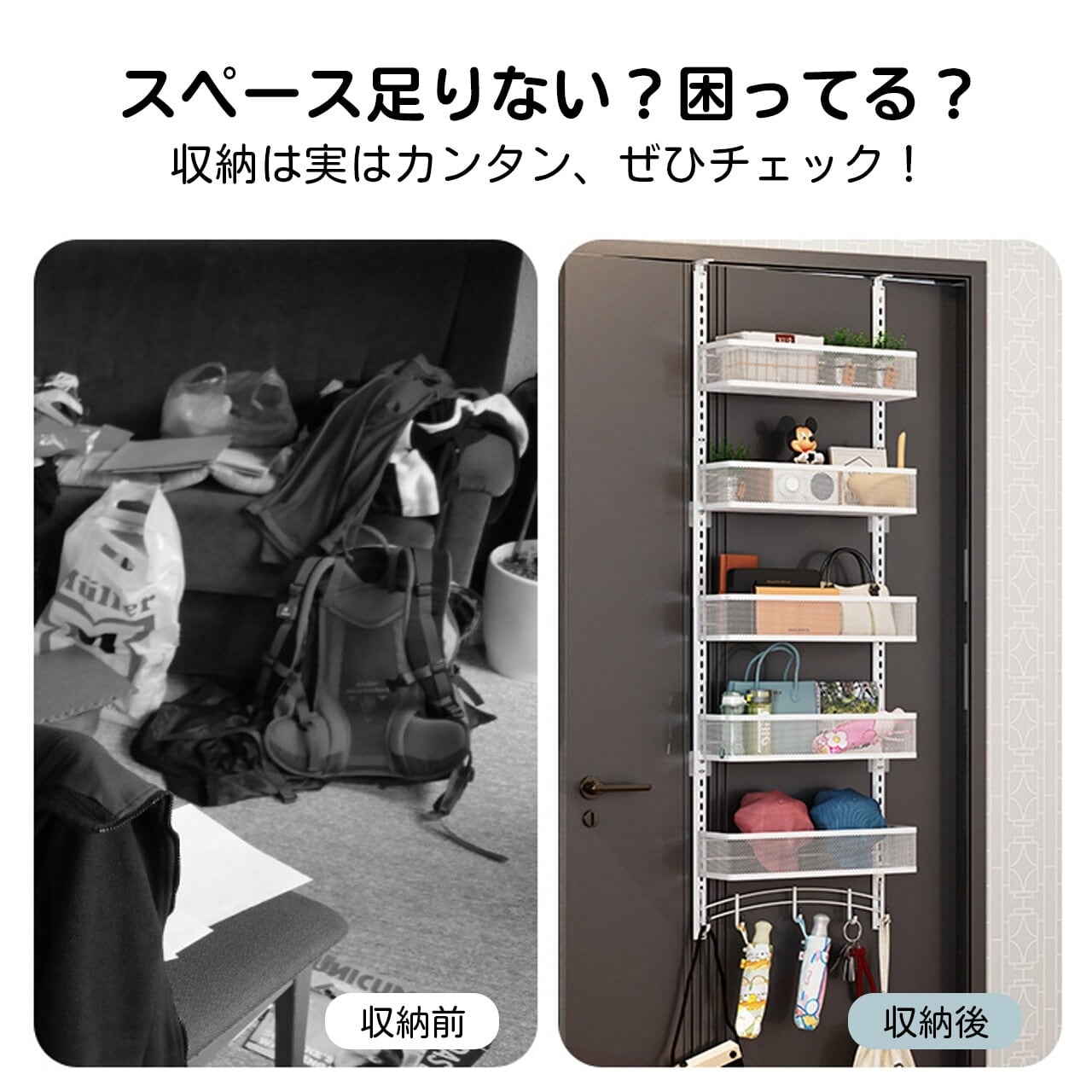 穴あけ不要で、ドアに掛けるだけの簡単取り付け。