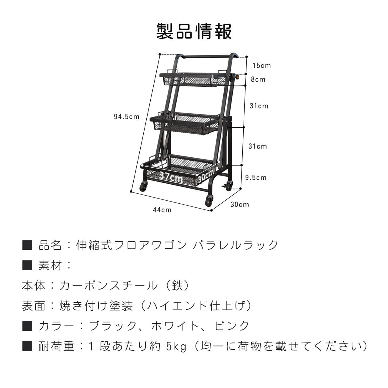 ■ 品名:伸縮式フロアワゴン パラレルラック