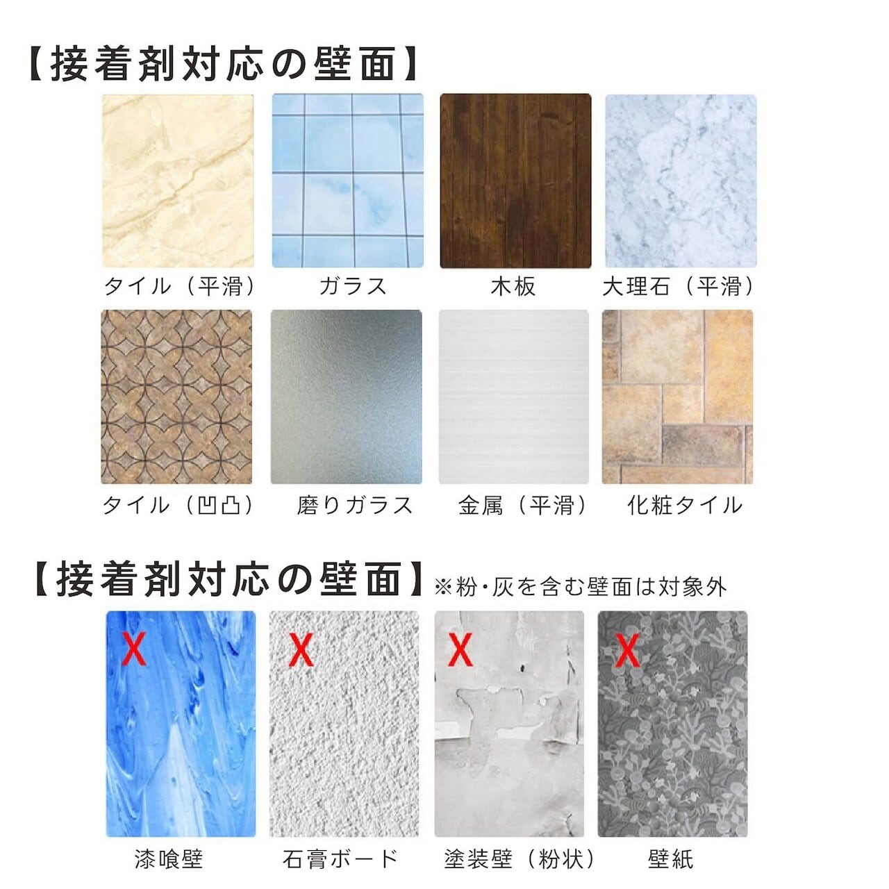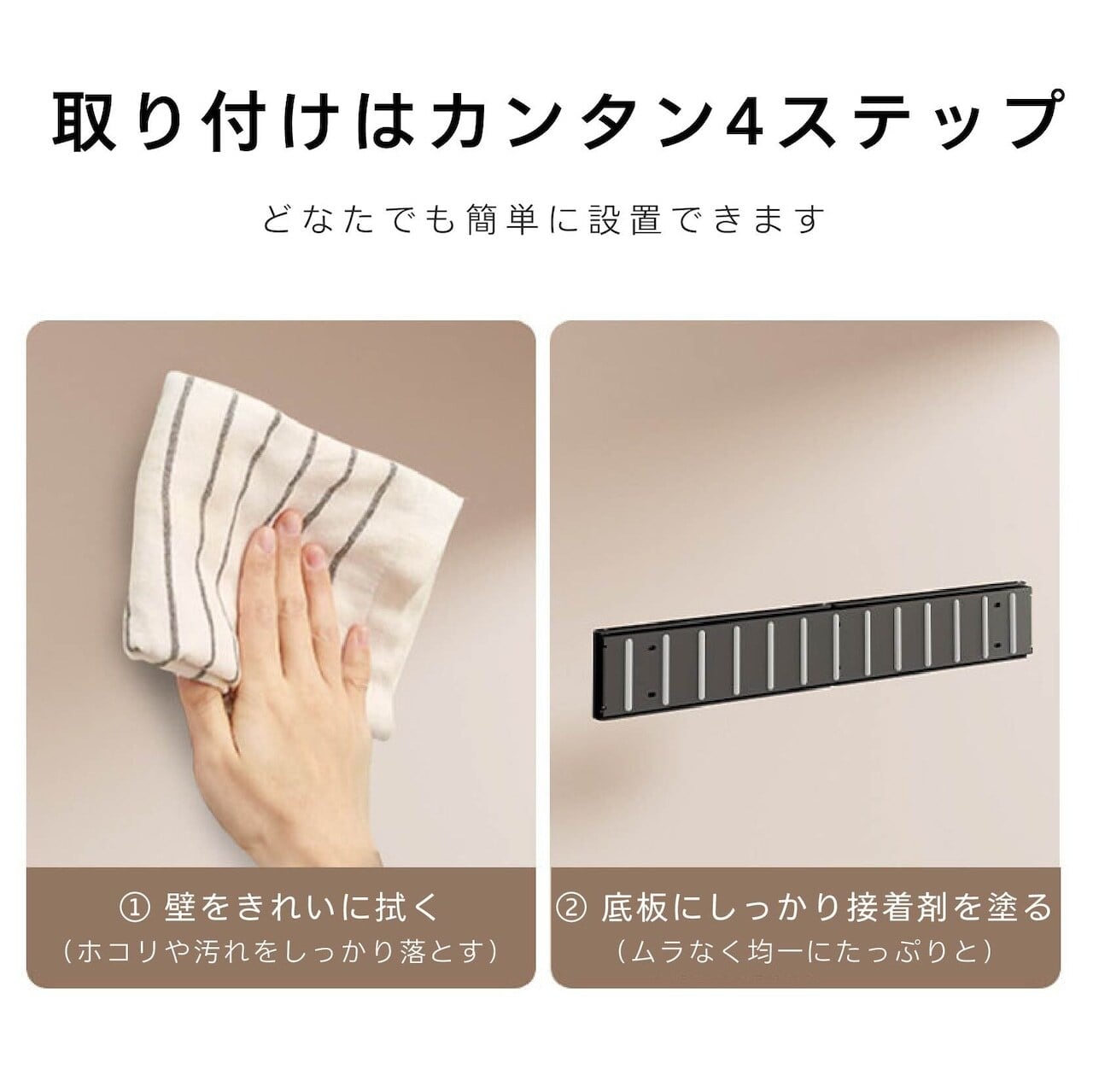 ※取り付け面の状態によっては、接着剤での固定が難しい場合があります。必ず取扱説明書をご確認ください。
