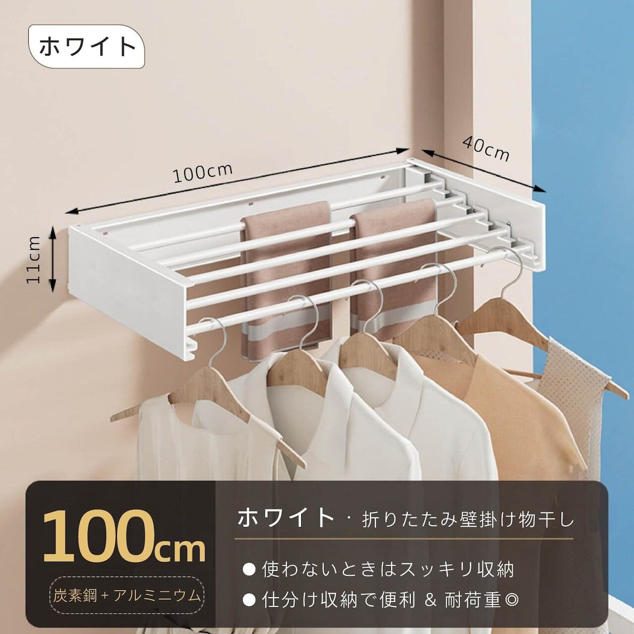 欲しい機能が全部揃った、使いやすさを追求した壁掛け物干しです。