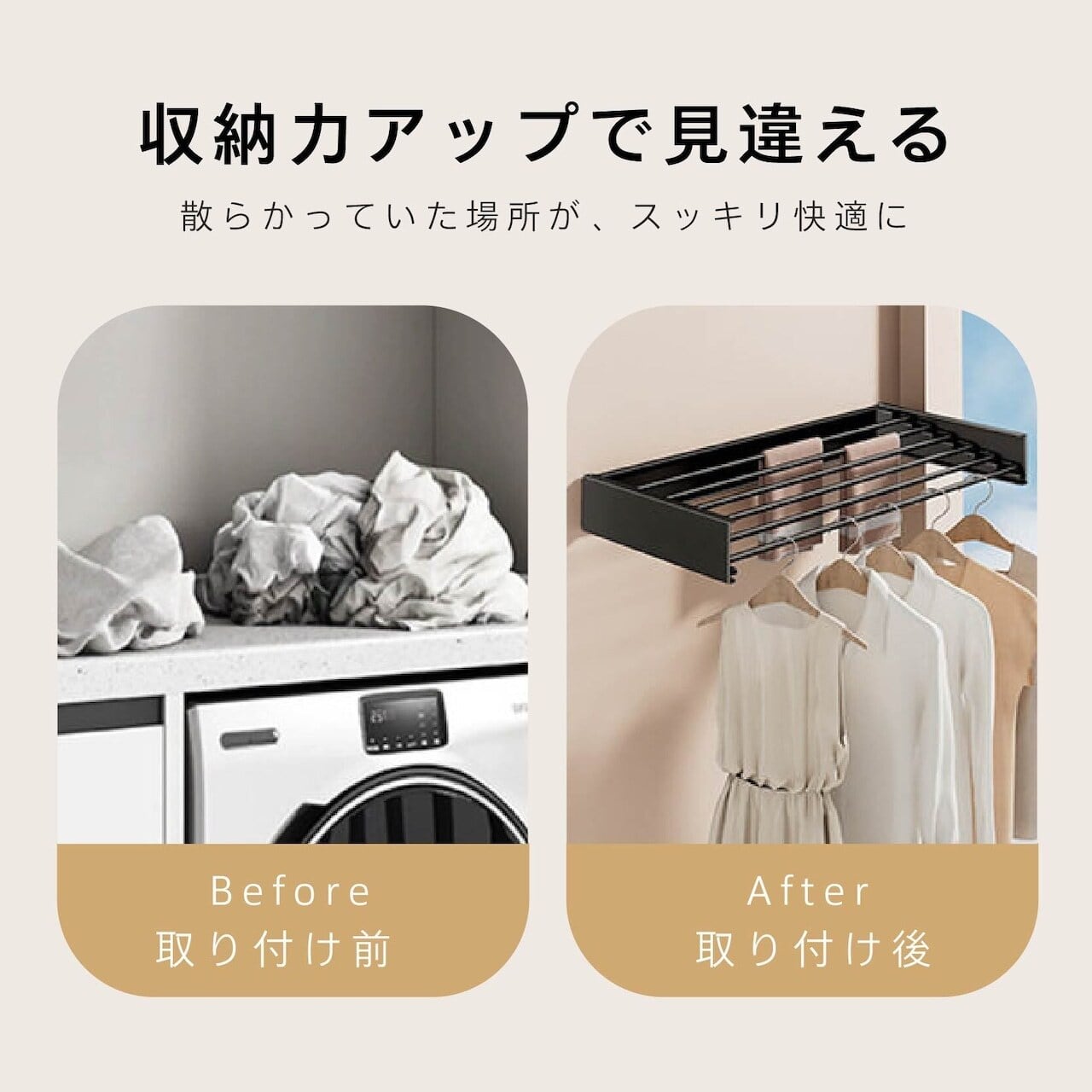 5本の掛け杆で、家族の洗濯物もたっぷり収納。狭い場所でも大活躍します。