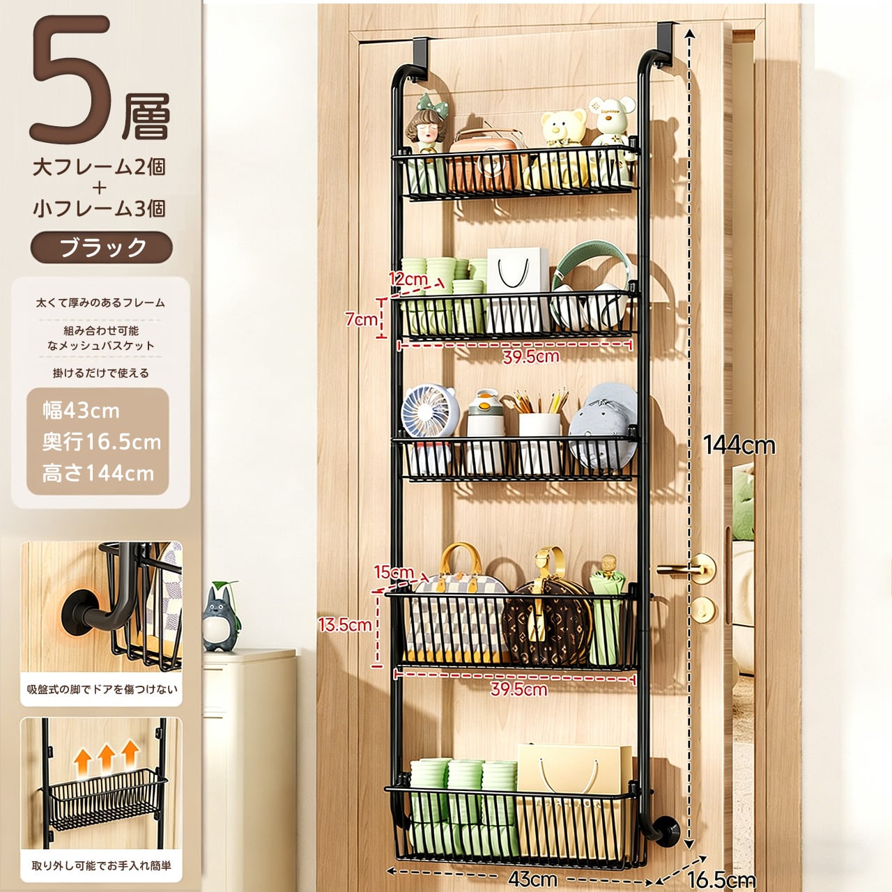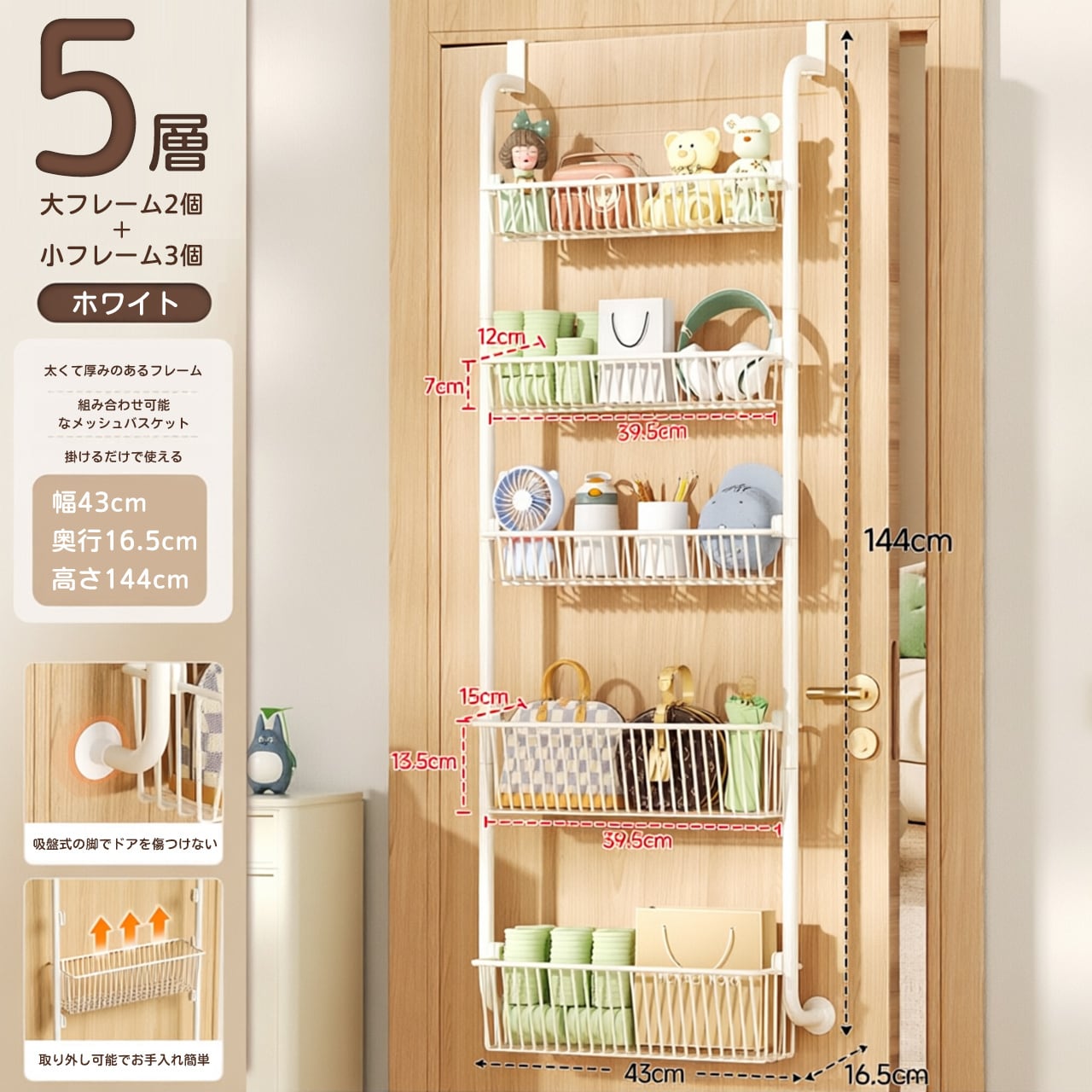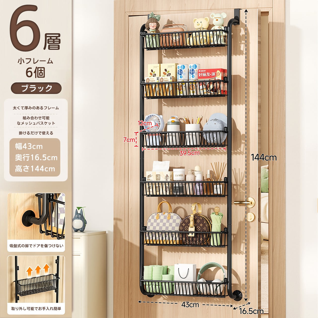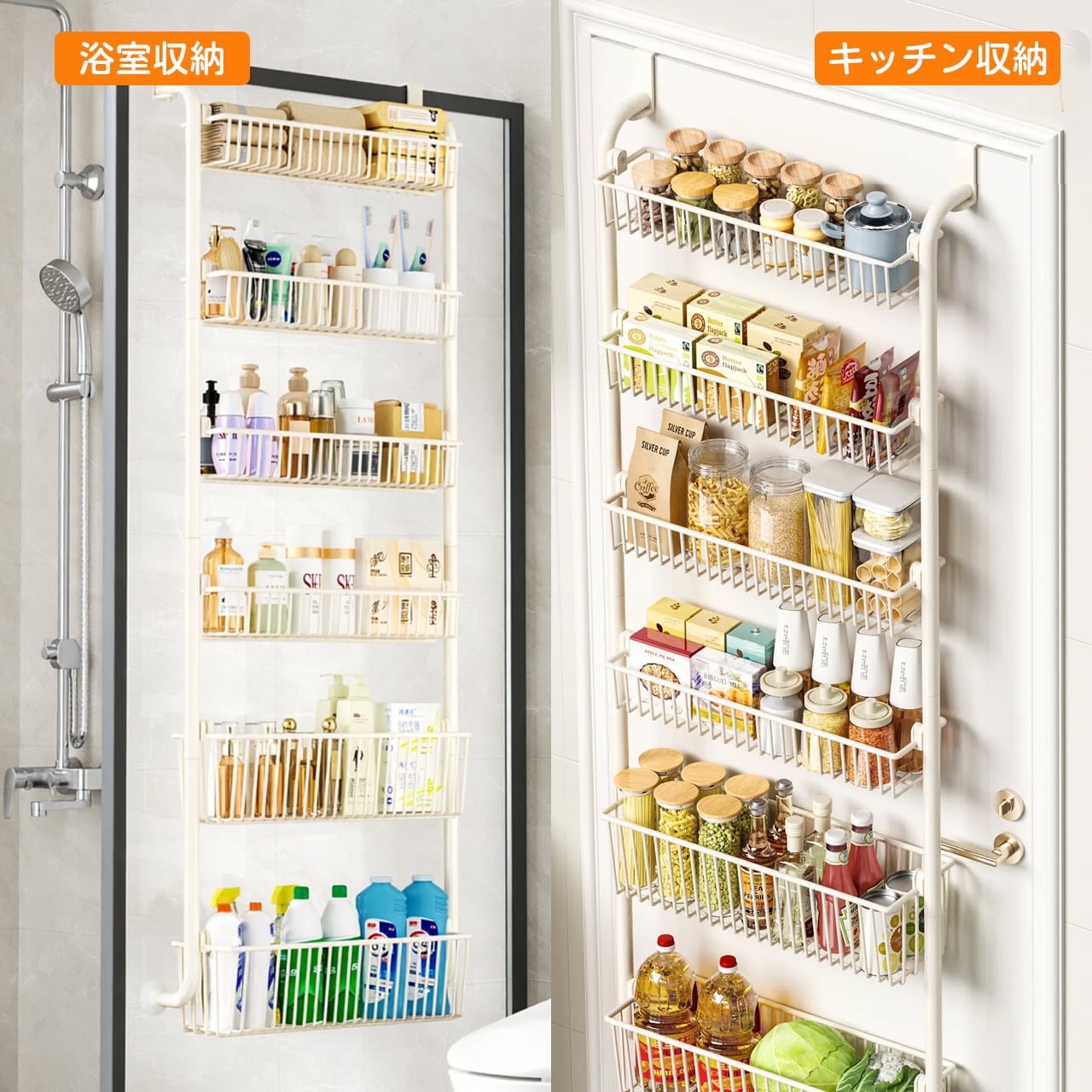 H01 . 穴あけ不要!ドア掛け収納ラック|家庭用フラッグシップ店|バッグ・衣類・キッチン・バスルーム対応|ドア掛けフックで簡単収納