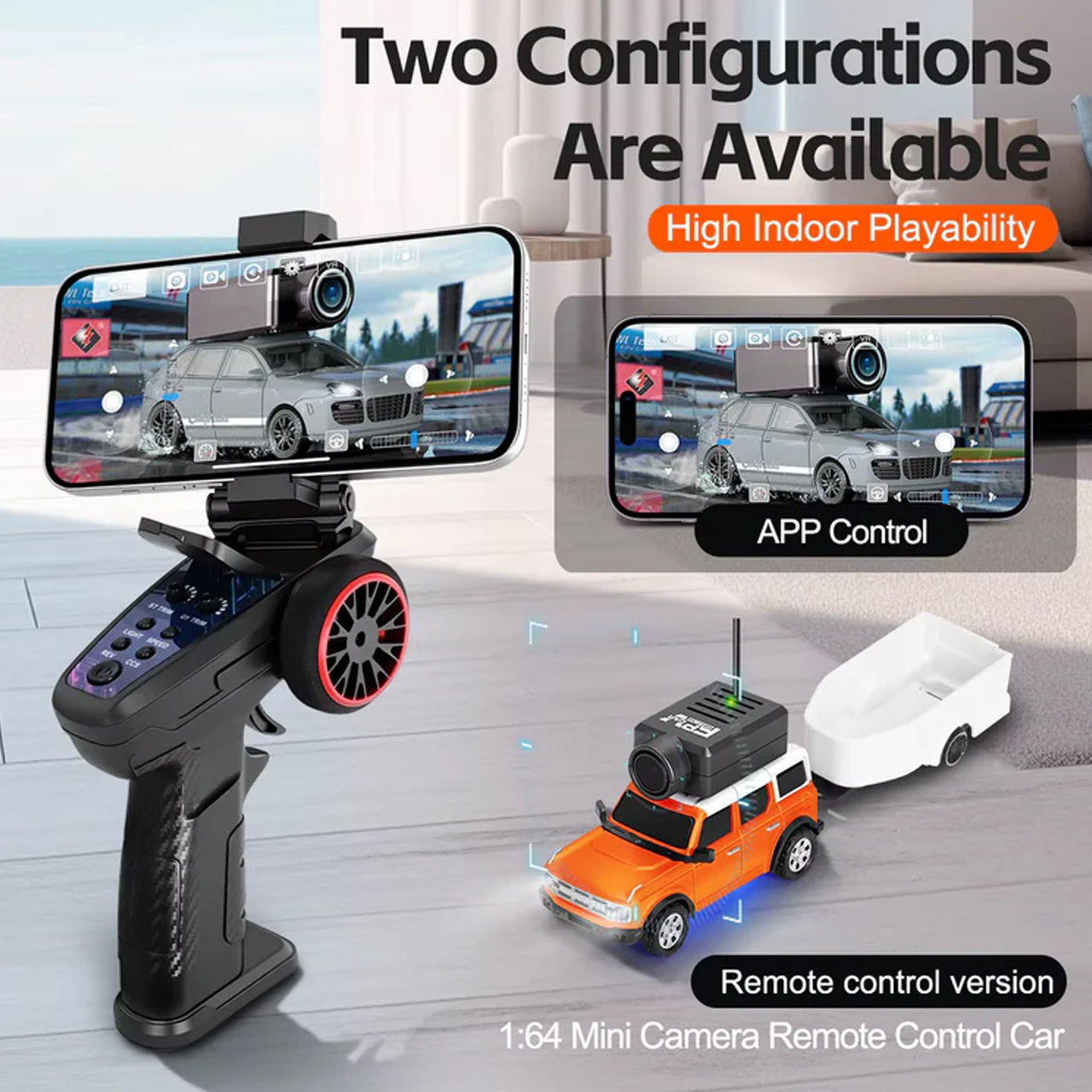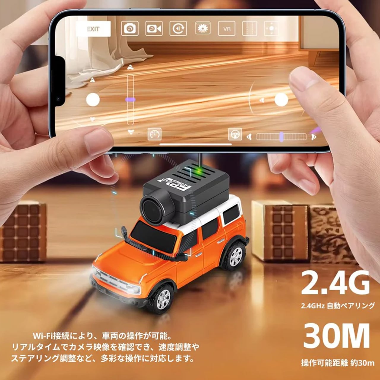 またはスマートフォンと接続して、臨場感あふれる一人称ドライビング体験を。