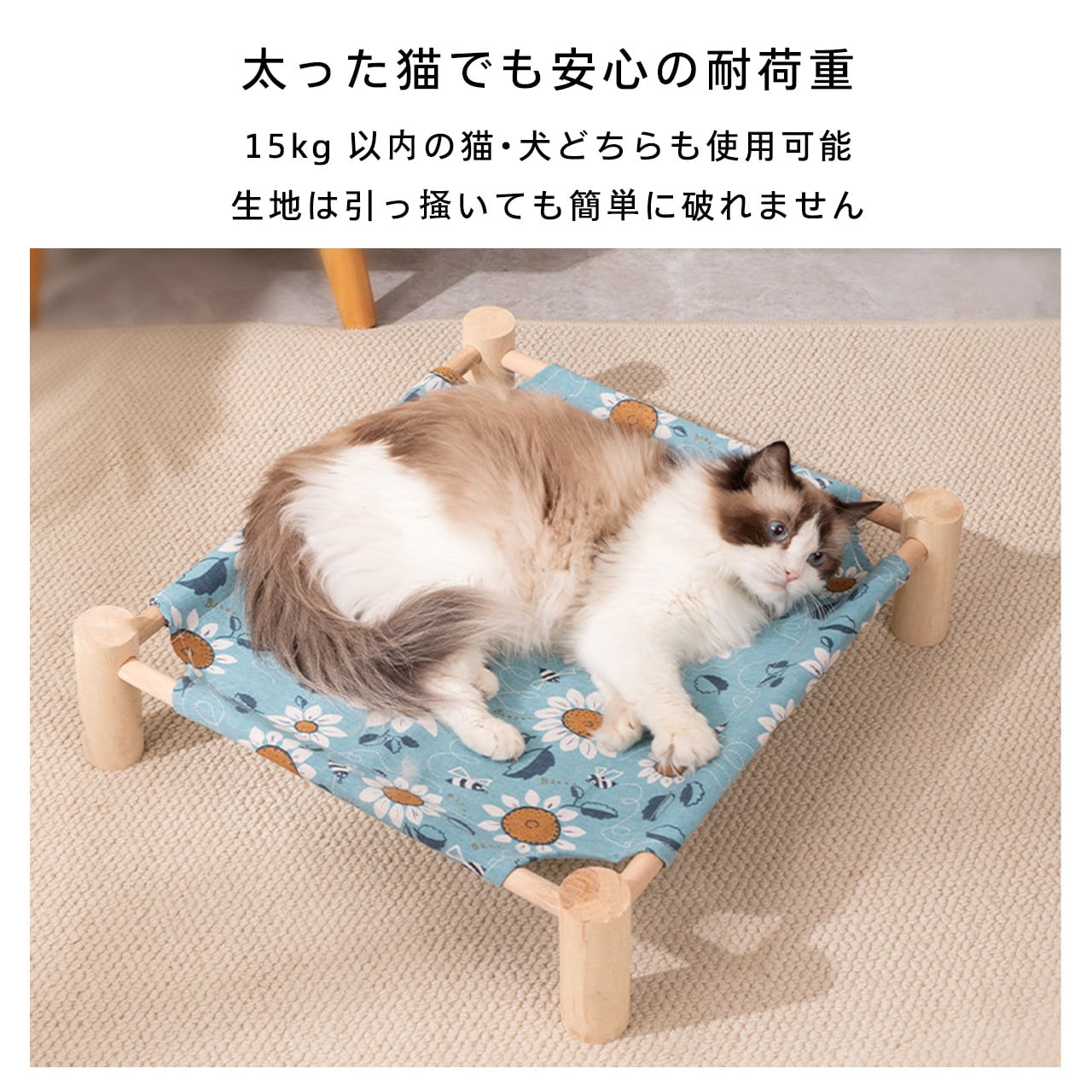床から離れた設計で、湿気やほこりを避け、ペットの皮膚や呼吸器を守ります。通気性も良く、夏でも蒸れにくいです。