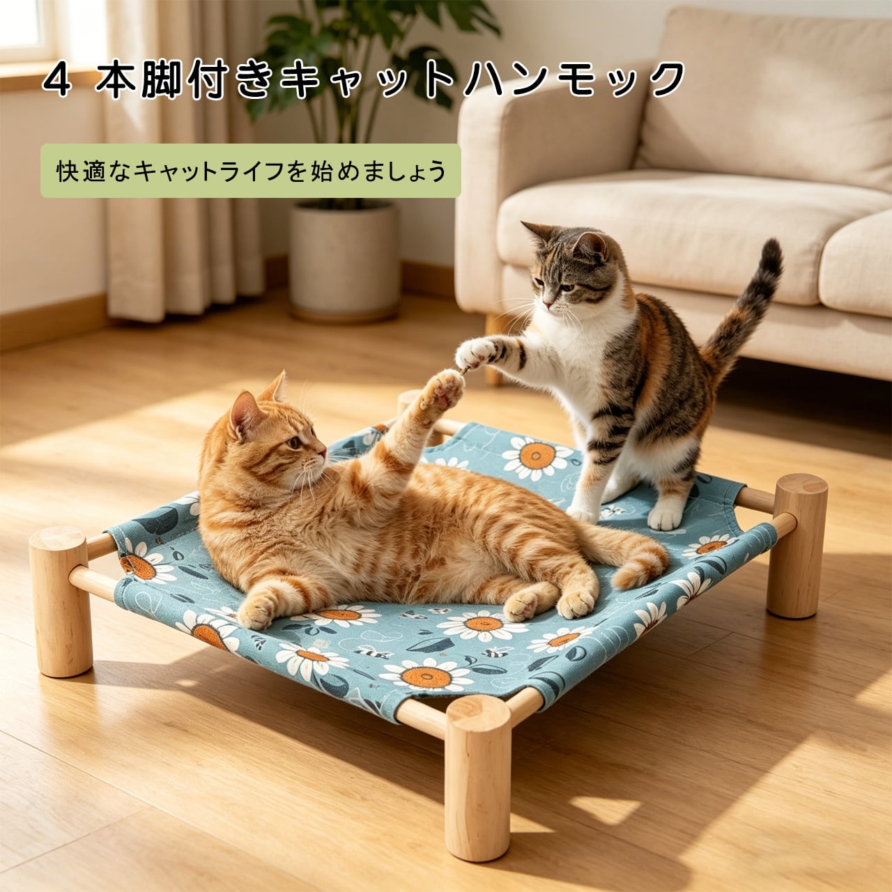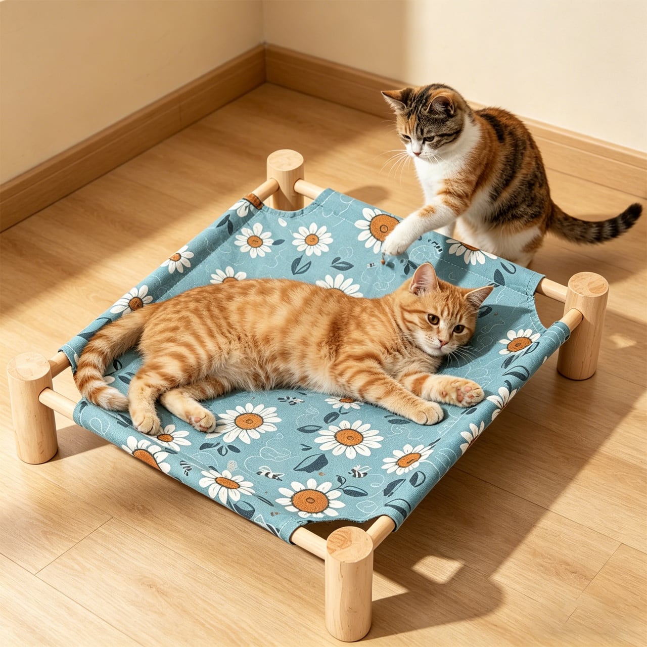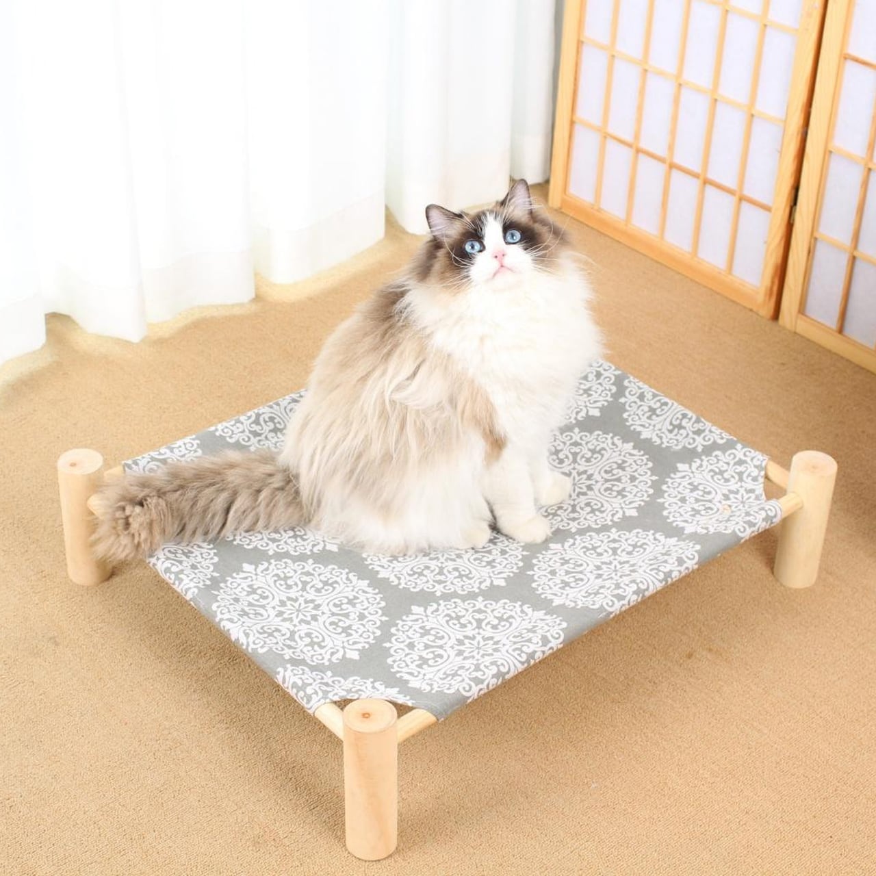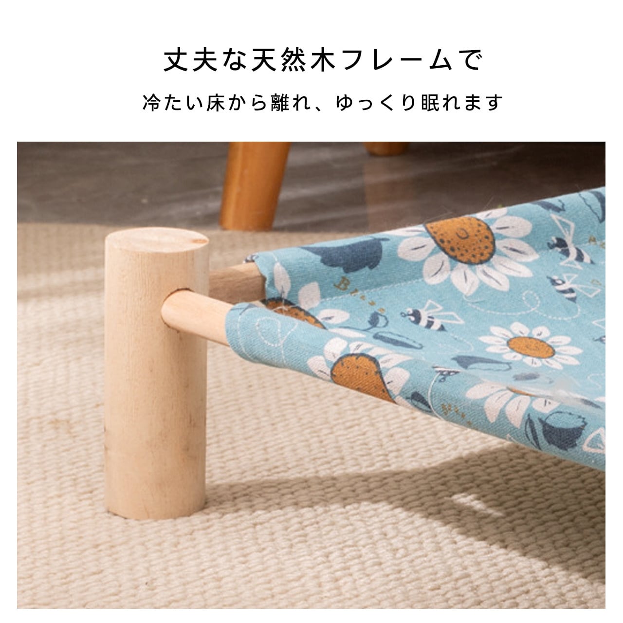 → 一年中使える通気性ペットベッドです!天然木製フレームと通気性の良い生地を採用し、夏は涼しく、冬もあたたかく。床から離れた高床設計で湿気やほこりを避け、ペットの健康を守ります。取り外し可能なカバーでお手入れも簡単、猫も小型犬もゆったりくつろげます。