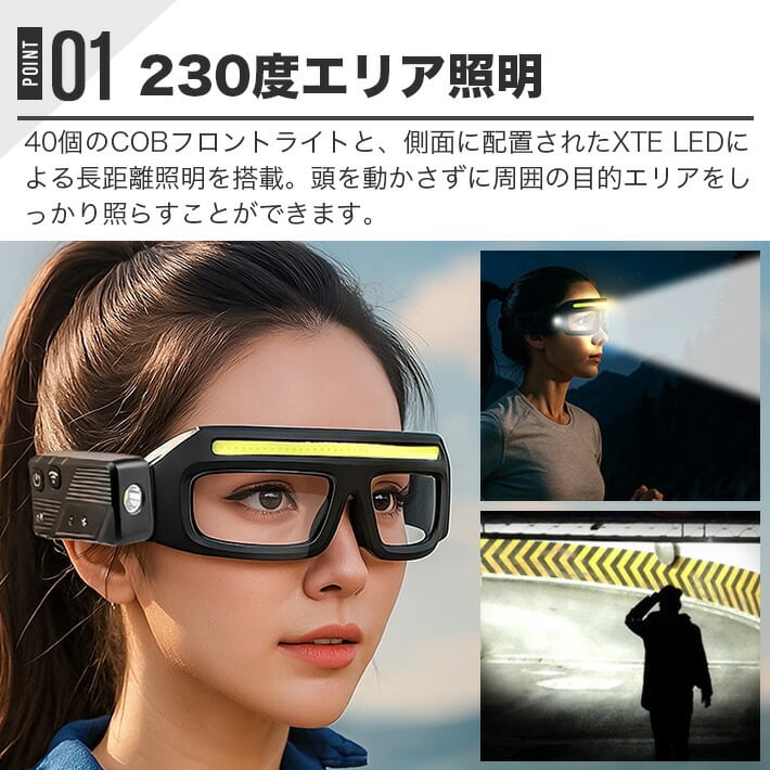 F06 .2個セット 眼鏡式_LEDヘッドライト 充電式 500ルーメン 5つの照明モード センサー機能 充電式ヘッドライト ヘッドランプ IPX4 作業用 懐中電灯 防塵 防災 LED照明 高輝度 防災用品 Type-C充電 収納ケース付き | COCOFID