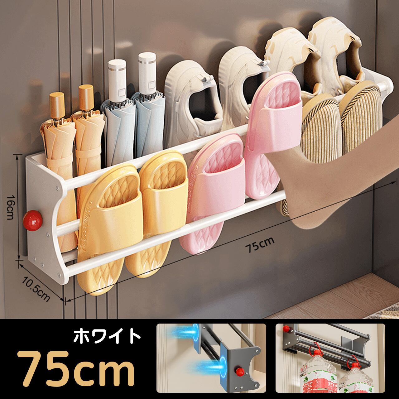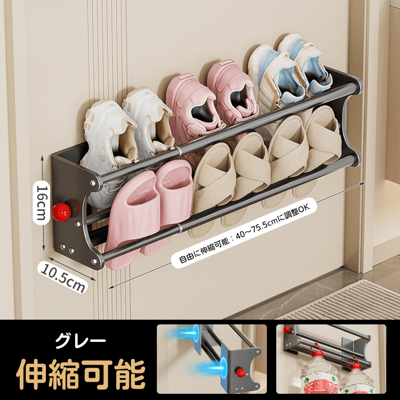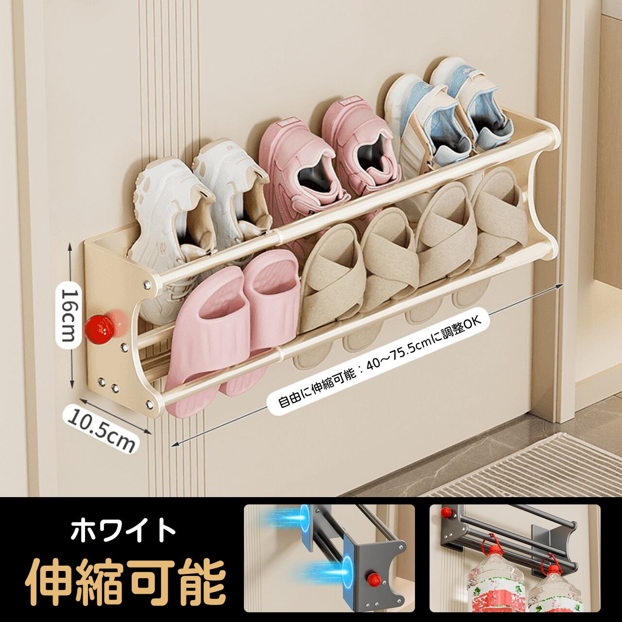 サイズ:幅40〜75.5cm × 奥行き16.5cm × 高さ10cm