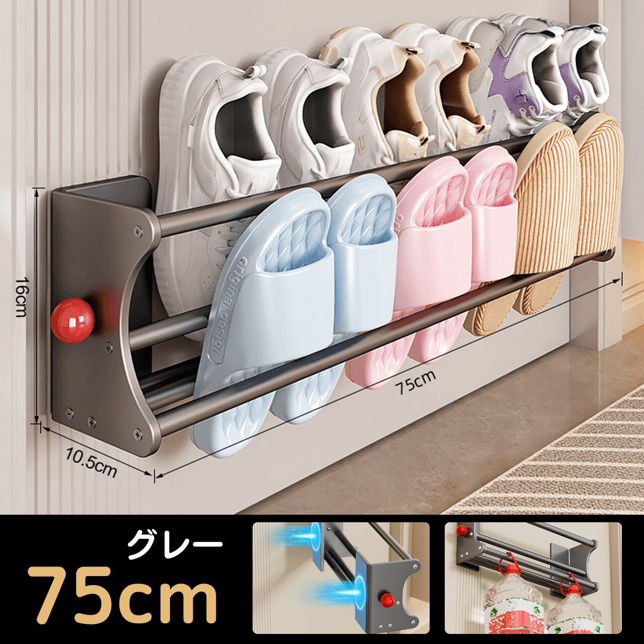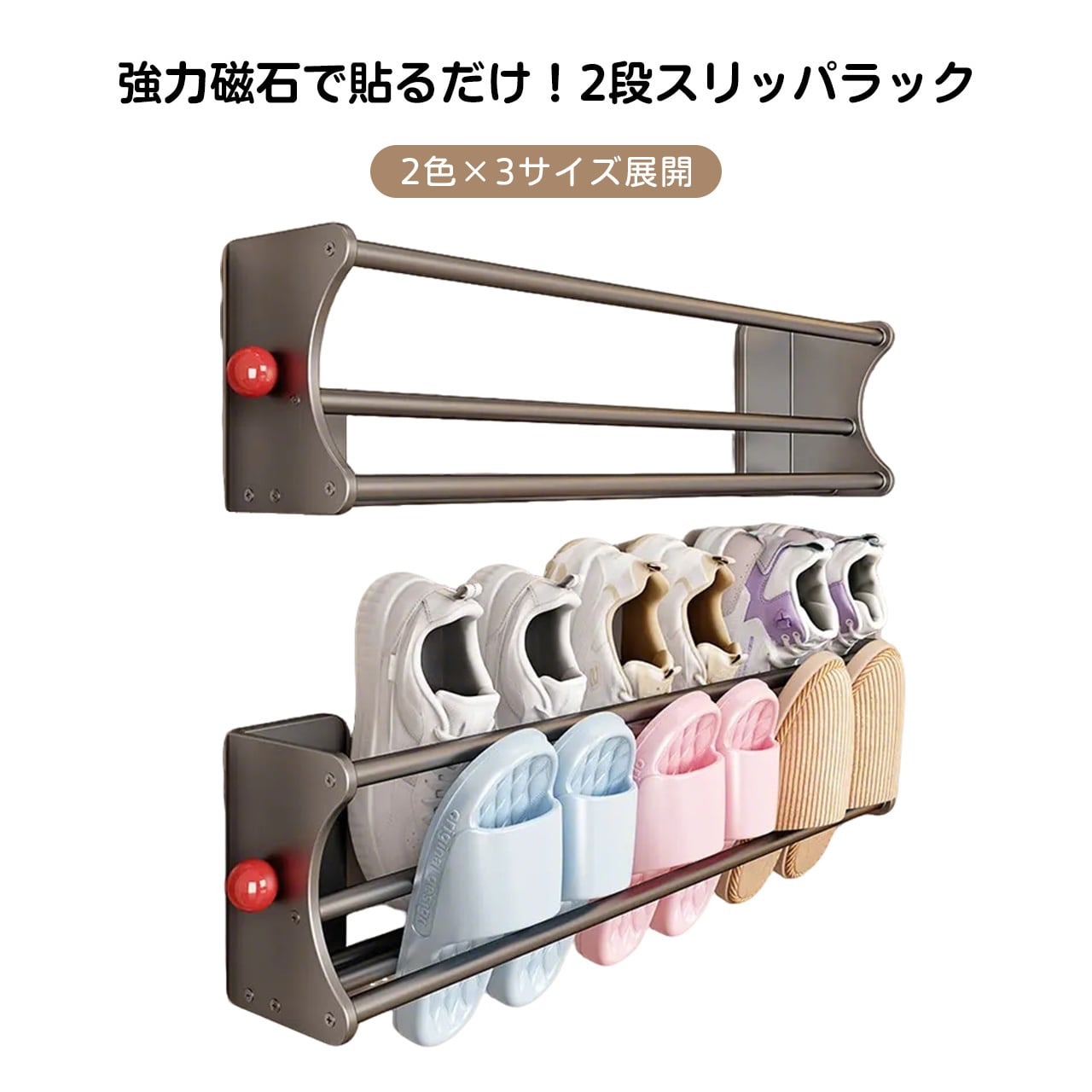 貼るだけ!2段スリッパラック|2色×3サイズ