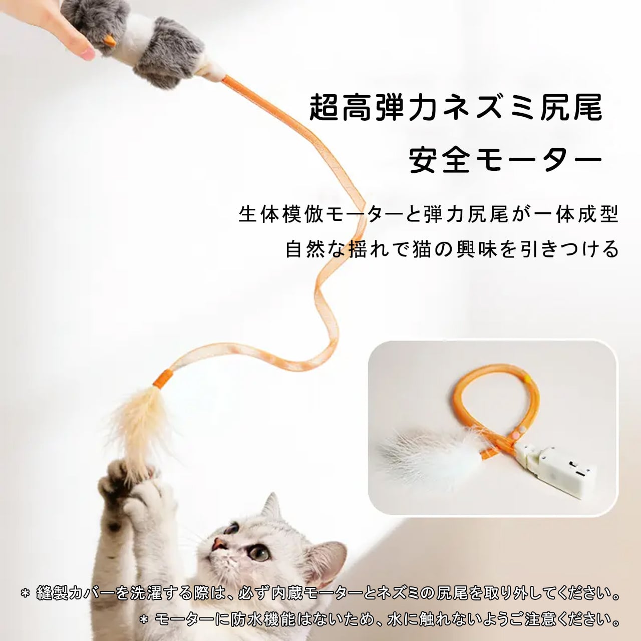 → 触れると自動で尻尾を動かして誘う、猫用電動ネズミおもちゃです。猫の狩猟本能を刺激し、一人遊びで運動不足やストレスを解消。留守番中や GW のおうち時間にも大活躍します。