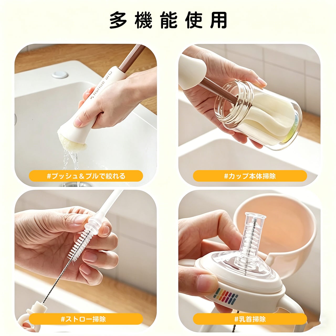 多機能で家庭の清掃に最適!哺乳瓶、ストロー、カップ、ワイングラスまでこれ1本でキレイに。