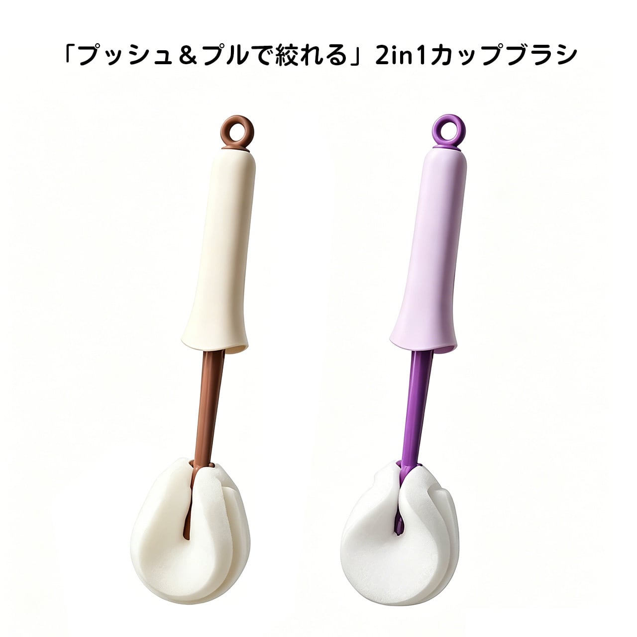 「プッシュ&プルで絞れる」2in1 伸縮式カップブラシ