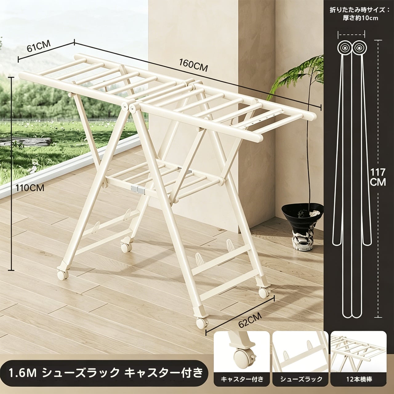 自立式折りたたみ物干しラック 布団・衣類対応 屋内・屋外用