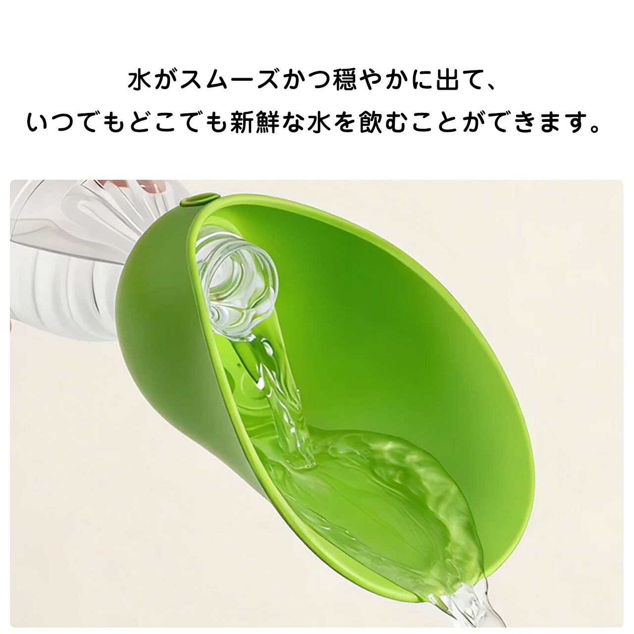 市販のペットボトルにそのまま取り付け可能。水がなくなったらボトルを交換するだけで、いつでもフレッシュな水を飲ませられます。