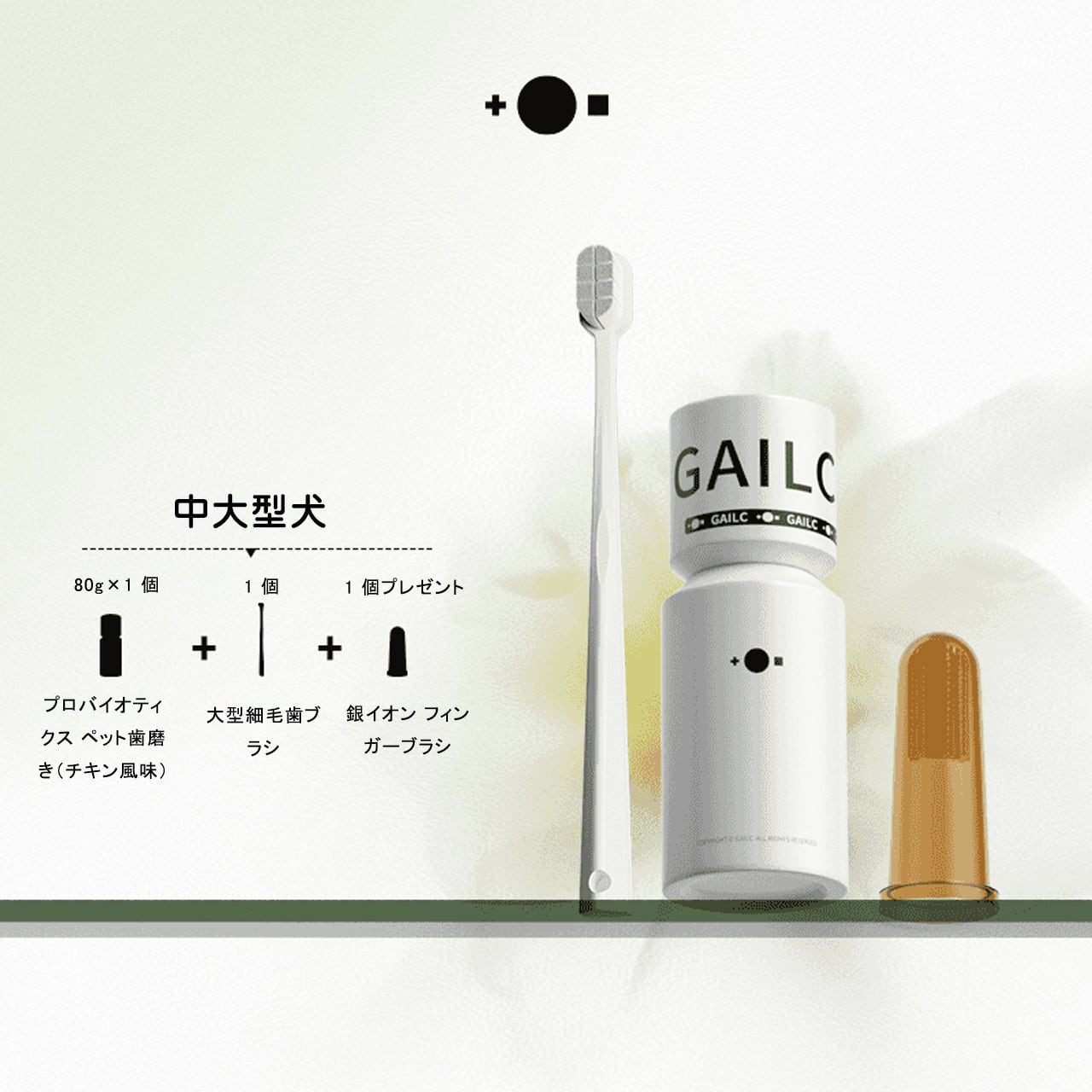 → 特許取得のプロバイオティクスを配合した、犬猫共用の歯磨きセットです。歯垢除去率 83.79% アップで、愛犬・愛猫の口内環境を整え、口臭を抑えます。使いやすいブラシと、使い切りやすいポンプ式歯磨き粉がセットになっています。